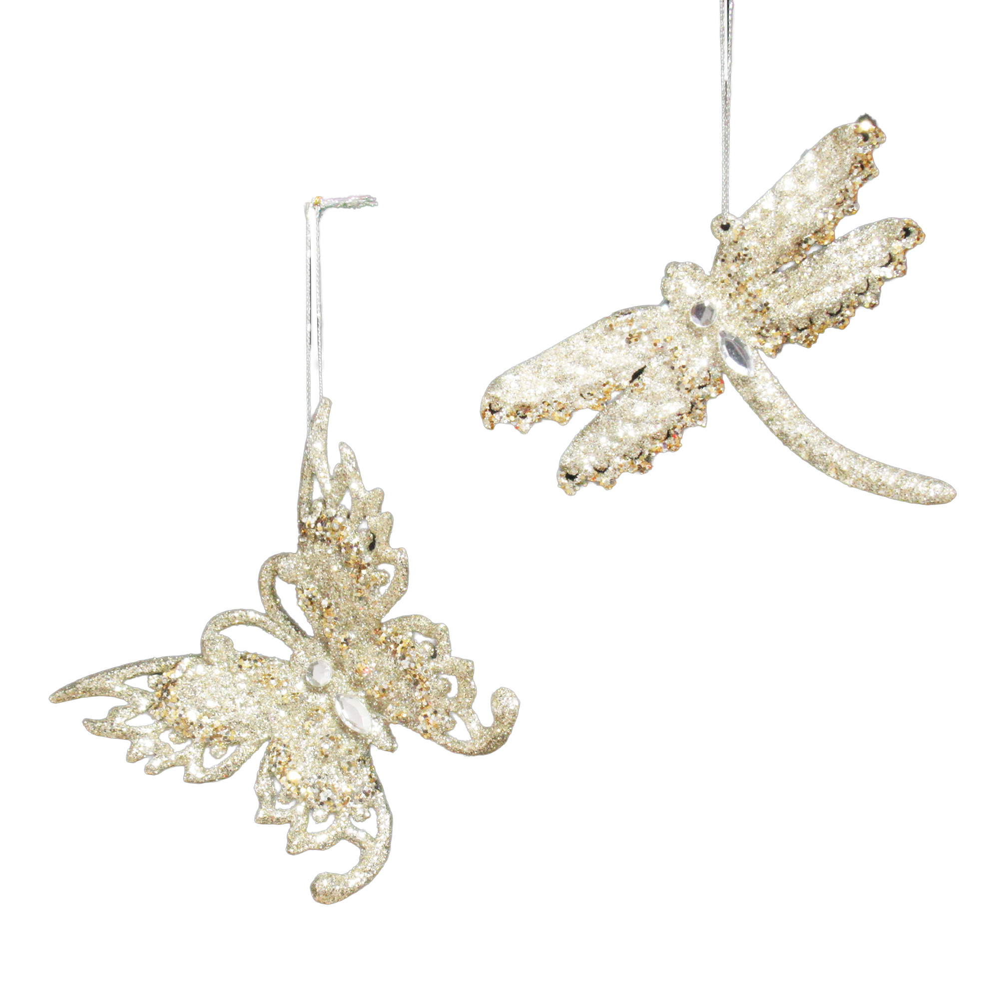 ORN BUTTERFLY & DRAGONFLY GOLD/SILVER W/GOLD 3.7″ & 5″ W/GLTR, W/CLEAR JEWEL, 2/S