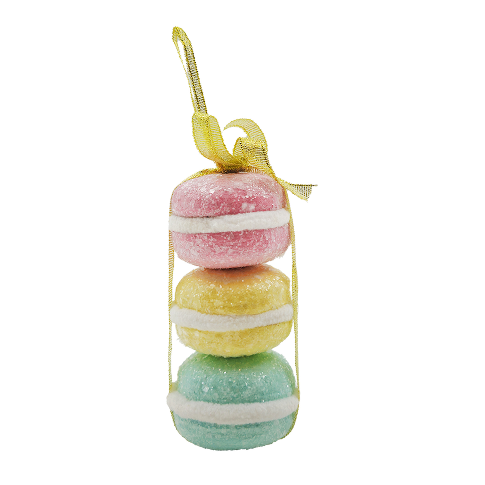 ORN CANDY MACAROON X 3 4″ PINK/YELLOW/BLUE W/ GLITTER