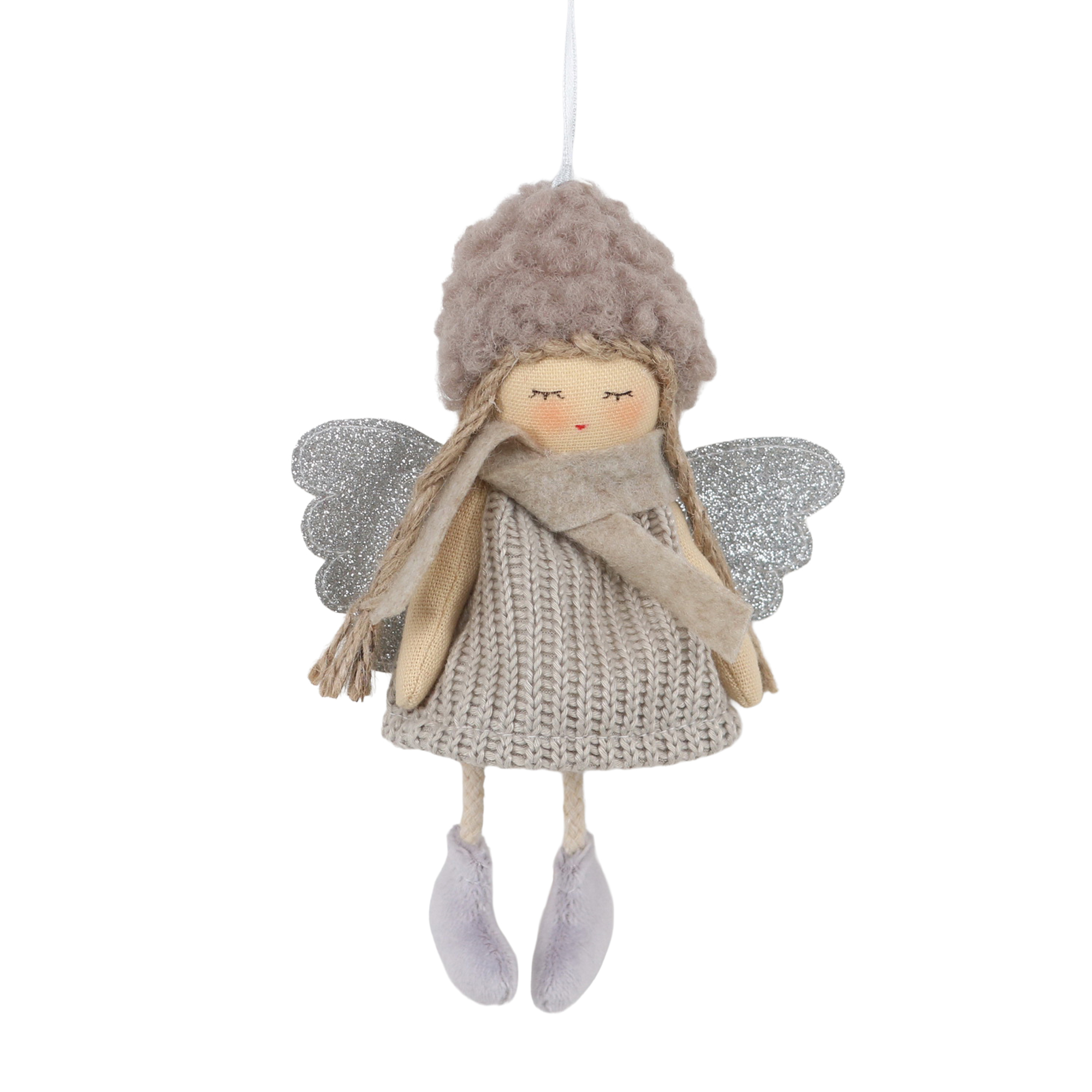 This charming ornament captures the essence of holiday warmth with its delicate craftsmanship and nostalgic appeal. Dressed in a soft, knitted dress accented by shimmering wings, this enchanting figure evokes the spirit of Christmas, bringing a touch of sweetness and joy to your festive decor.