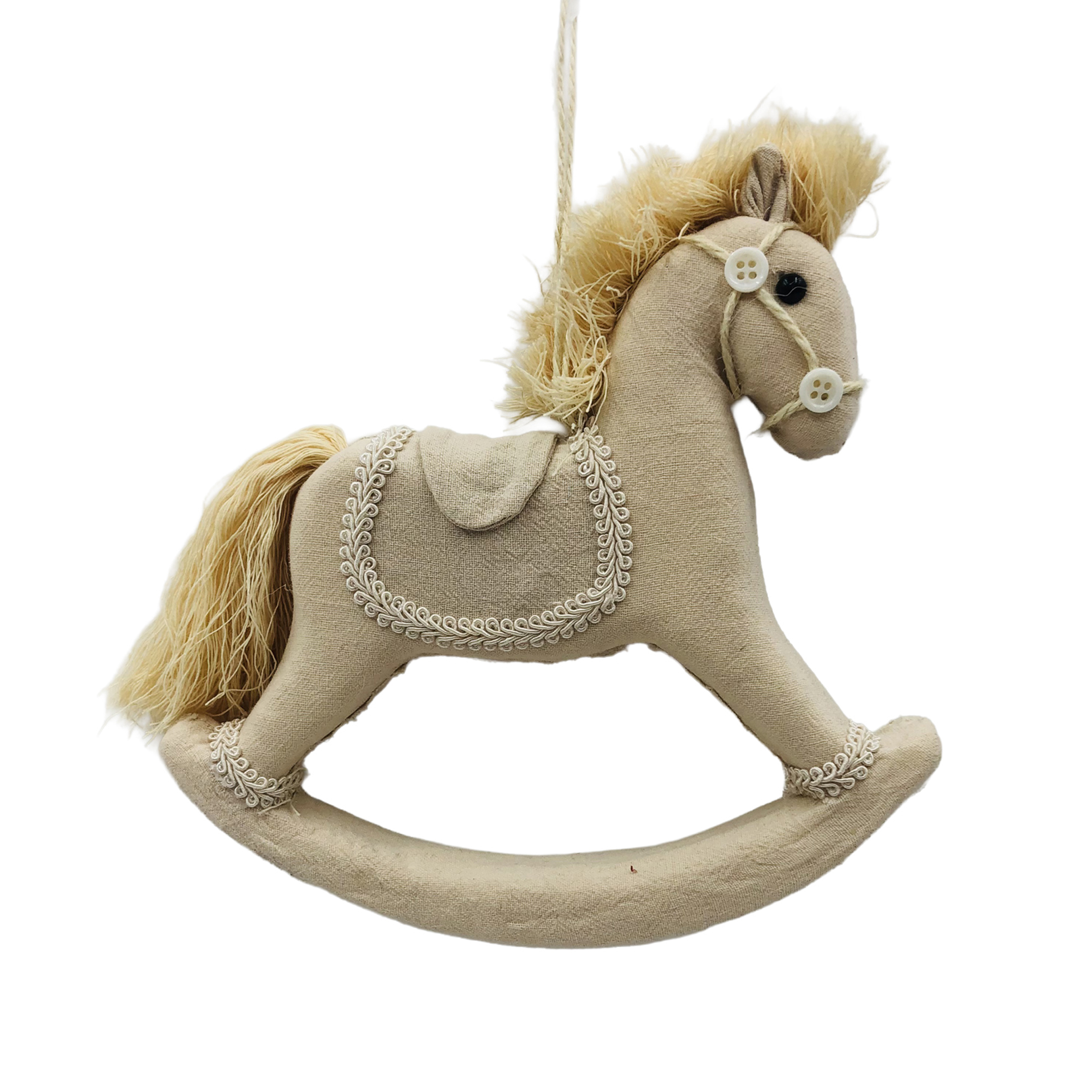ORN FABRIC ROCKING HORSE 7″X7″ CREAM