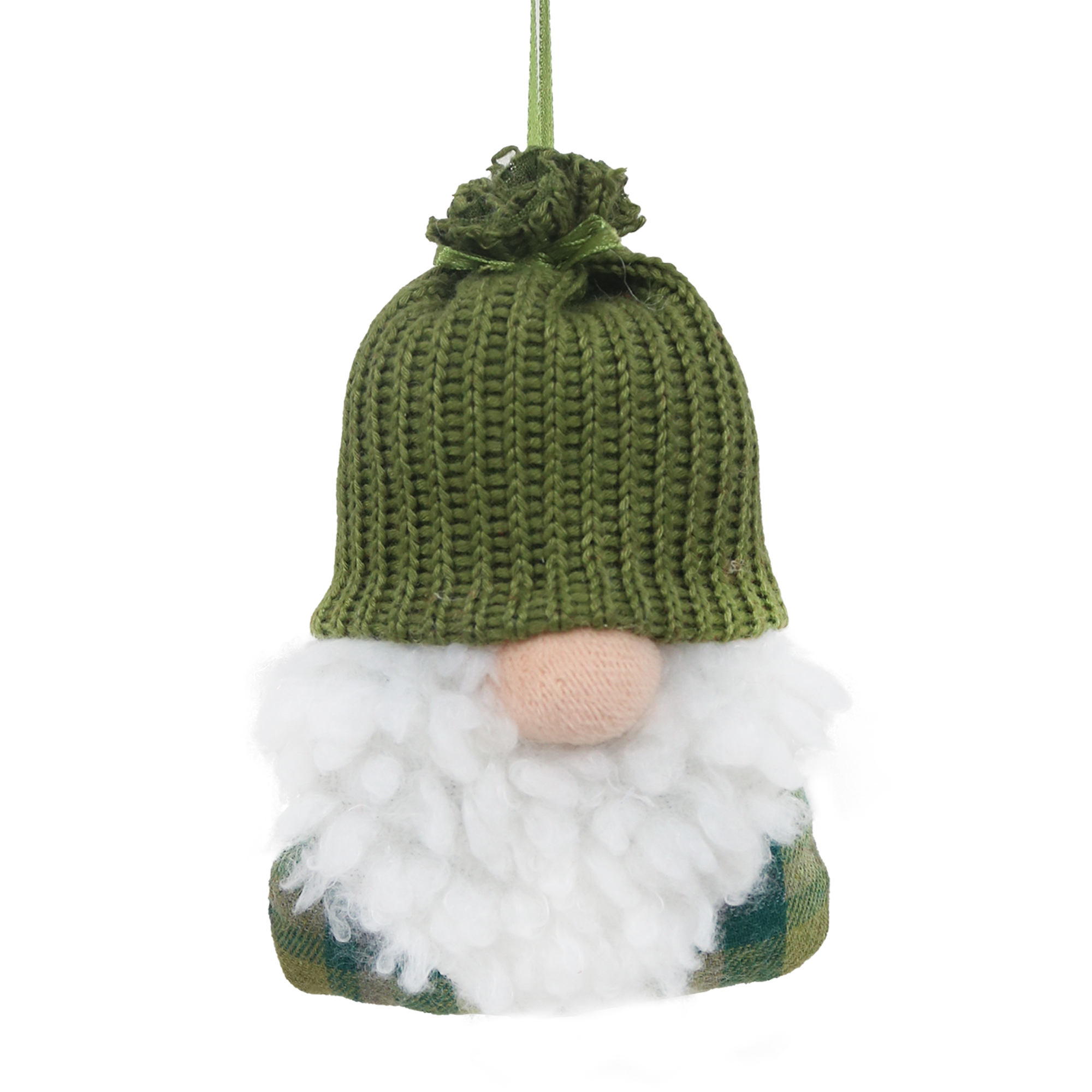 ORN FABRIC SANTA 4″ GREEN KNITTED HAT W/WOOL BEARD