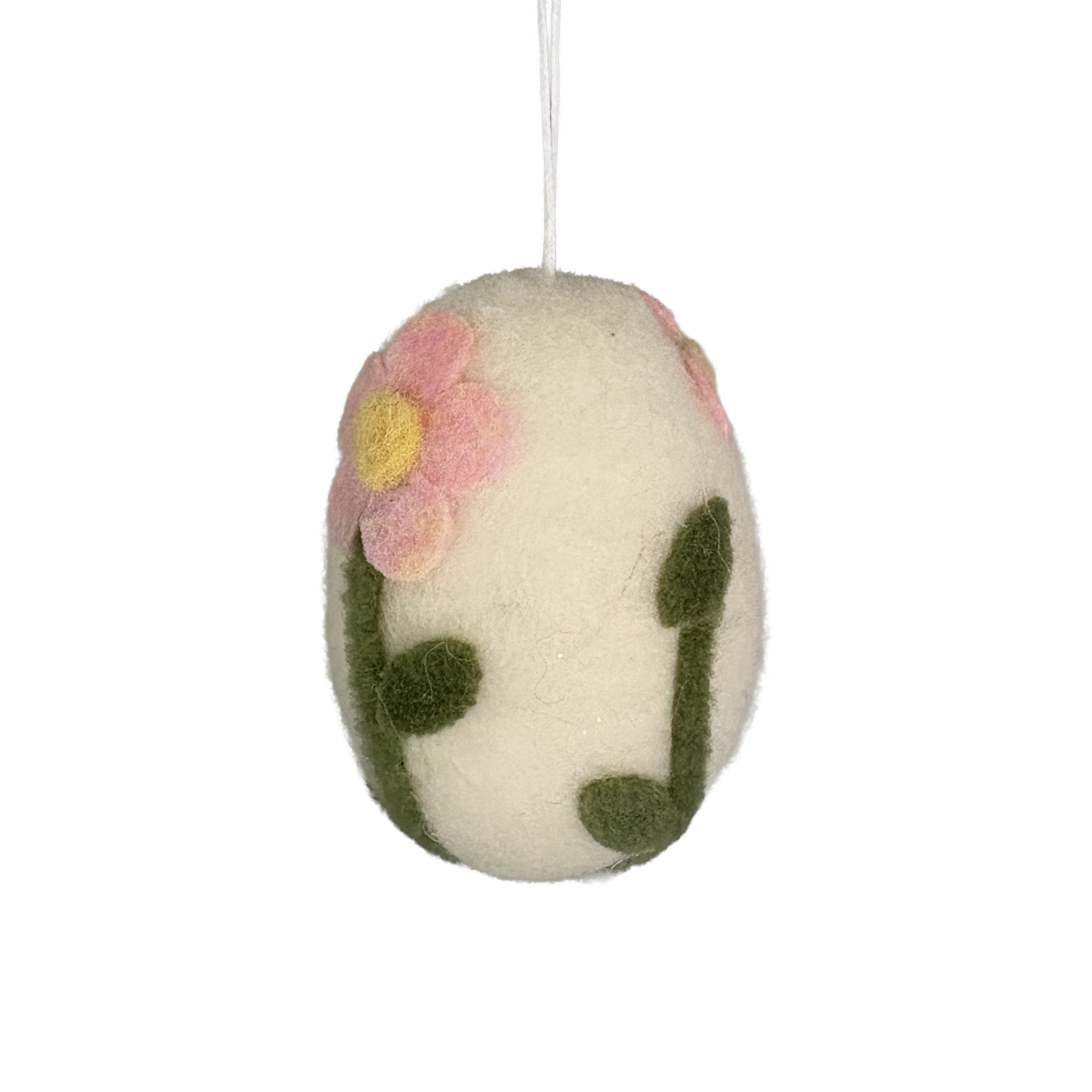 ORN FELT EGG 3.5″ WHITE W/FLOWER DECOR