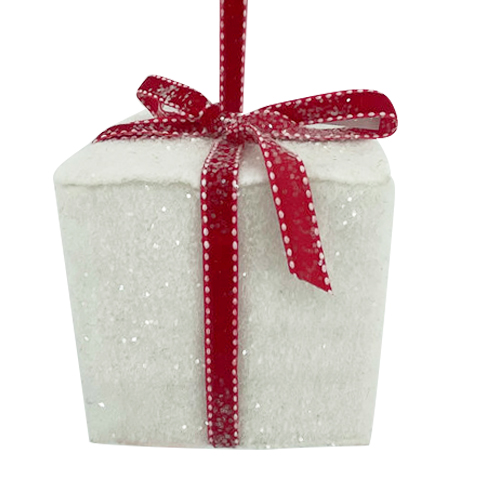 ORN FABRIC GIFT BOX 3.5″x3.5″ RED/WHITE FROSTED/GLITTER
