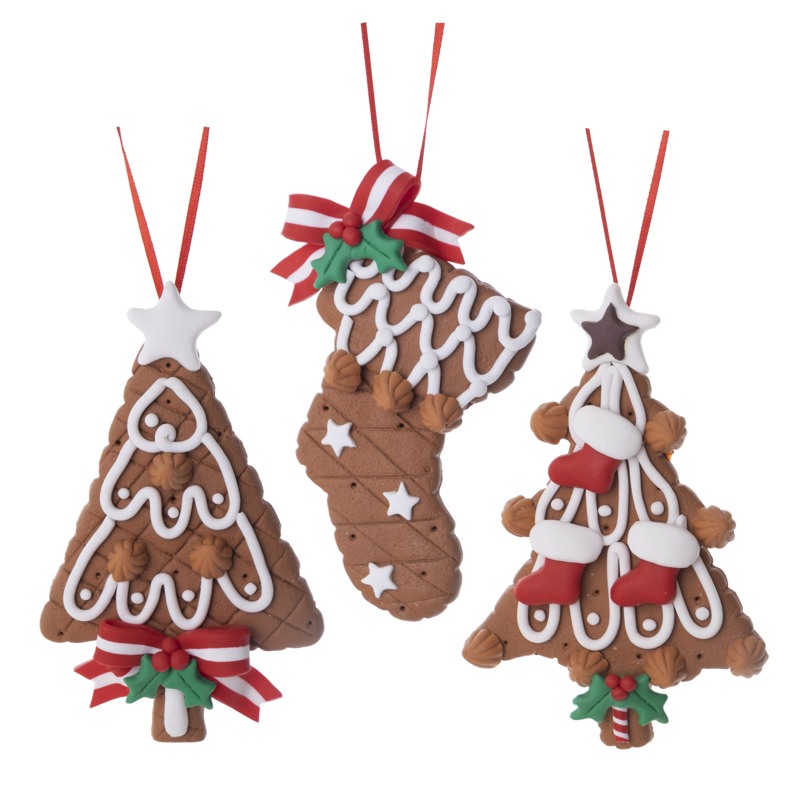 ORN GINGERBREAD RESIN 5″ XMAS TREE x 2 & STOCKING 3/S