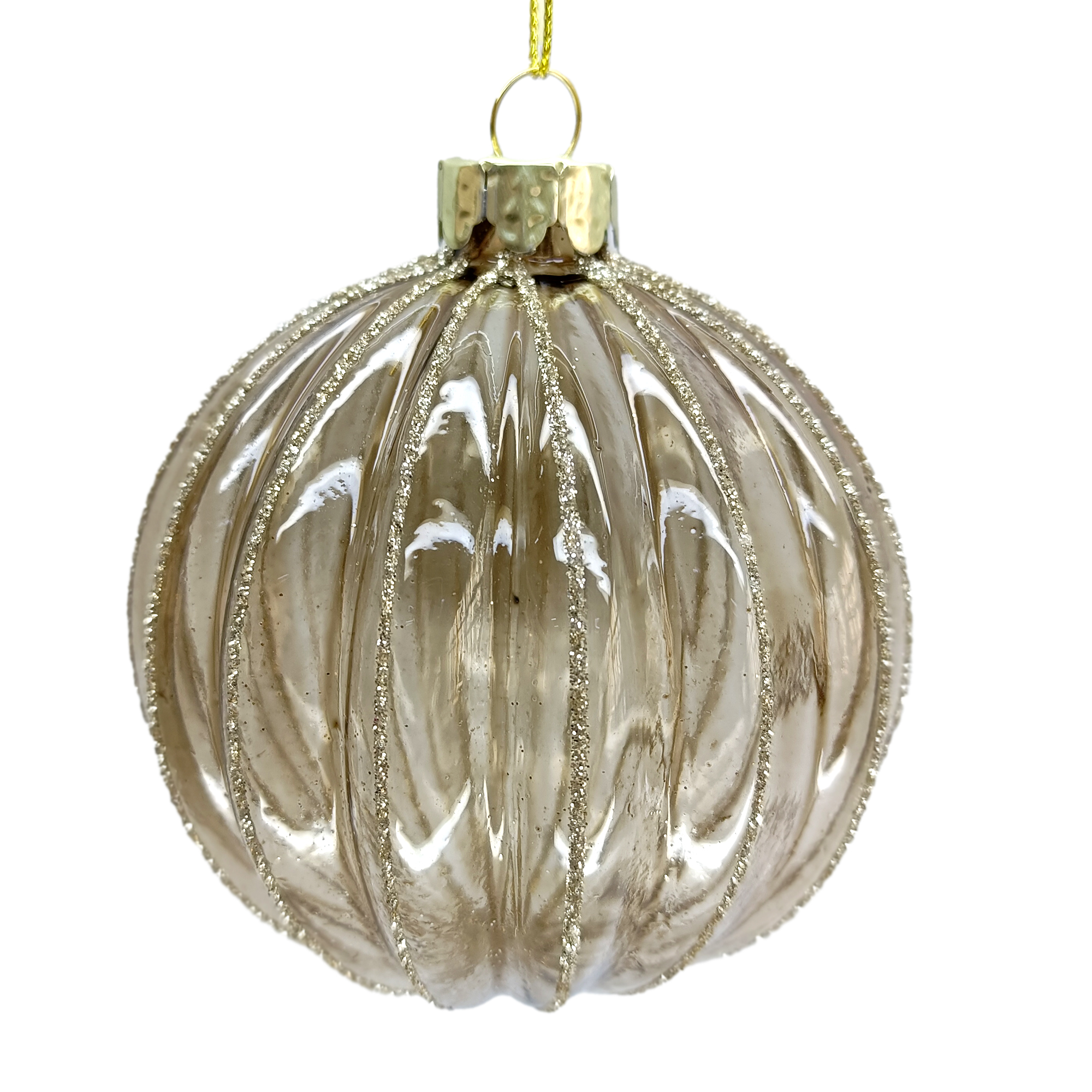 ORN GLASS BALL 3″ CLEAR COFFEE MELON W/ GLITTER