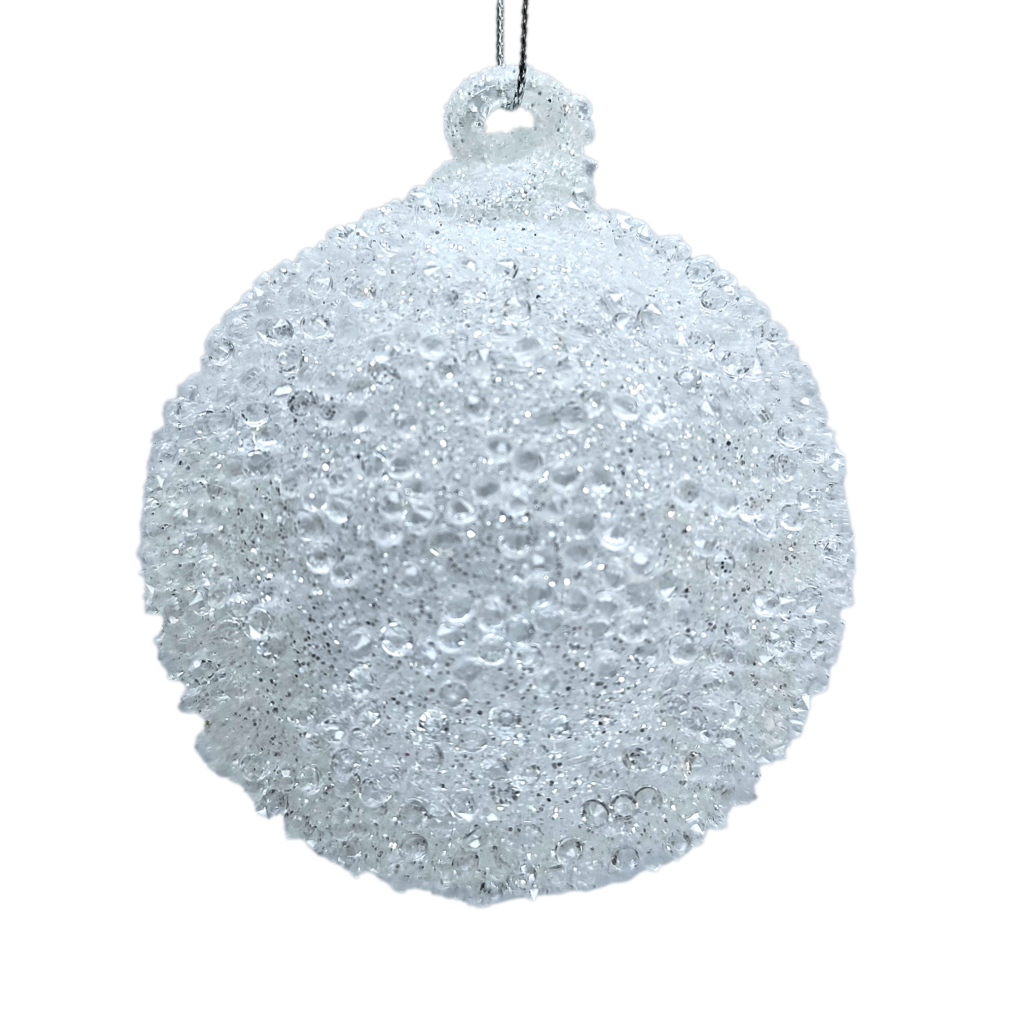 ORN GLASS BALL 3″ WHITE FROSTED W/ BEADS & GLITTER