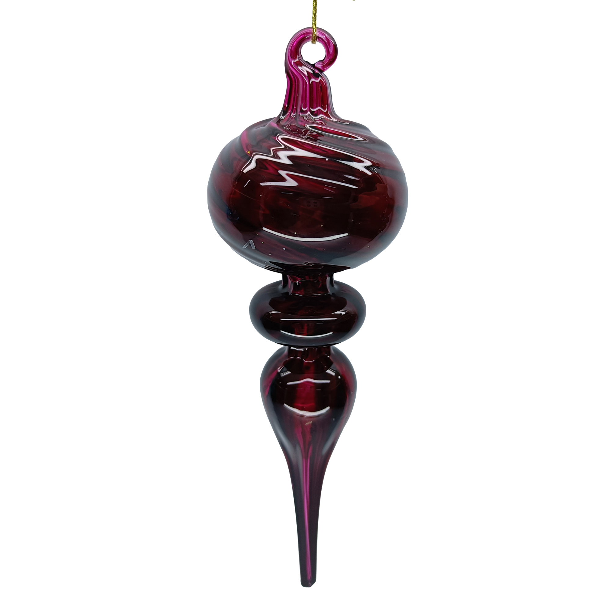 ORN GLASS FINIAL DROP 7.5″ DARK RED CLEAR TEXTURED SPIRAL RIDGES