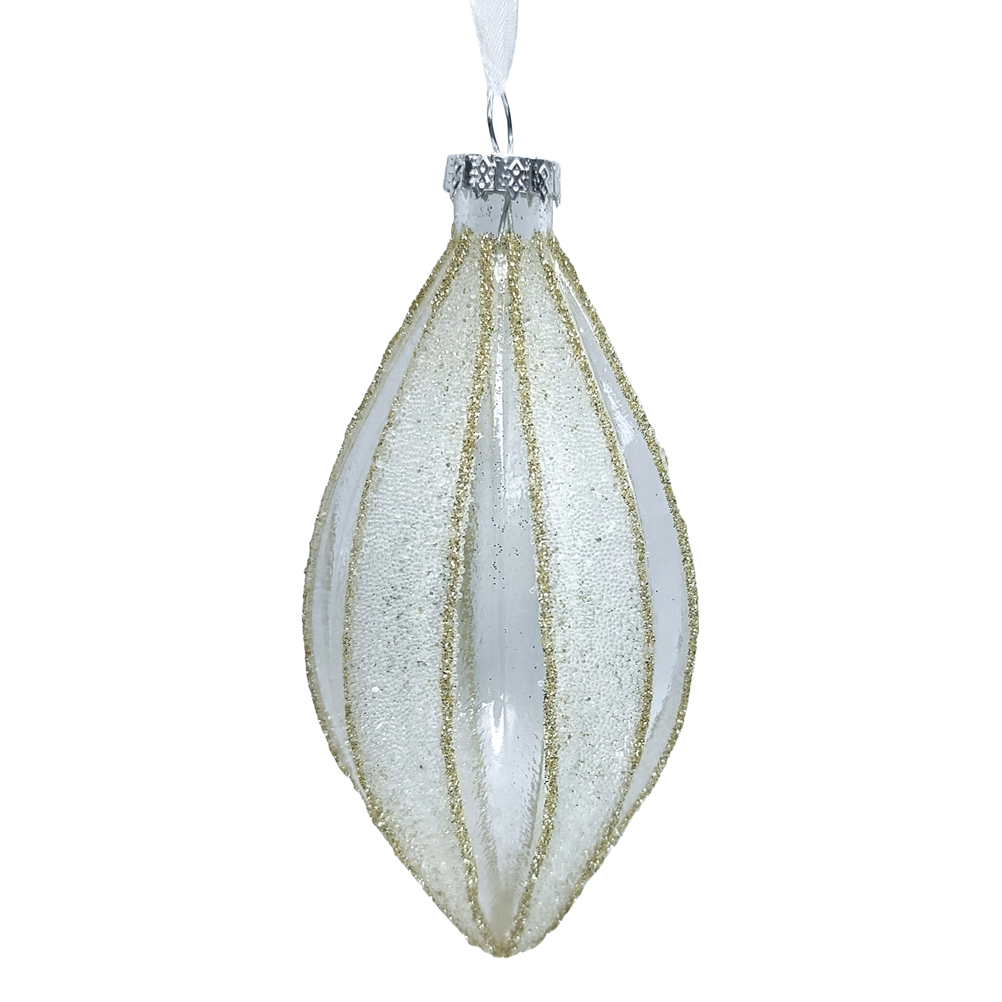 This exquisite ornament captures the essence of holiday elegance, featuring a gently curved shape that reflects the soft glow of twinkling lights. Handcrafted with a delicate glass finish, it showcases slight shimmering details along its surface, evoking cherished memories of festive gatherings and family traditions around the tree.
