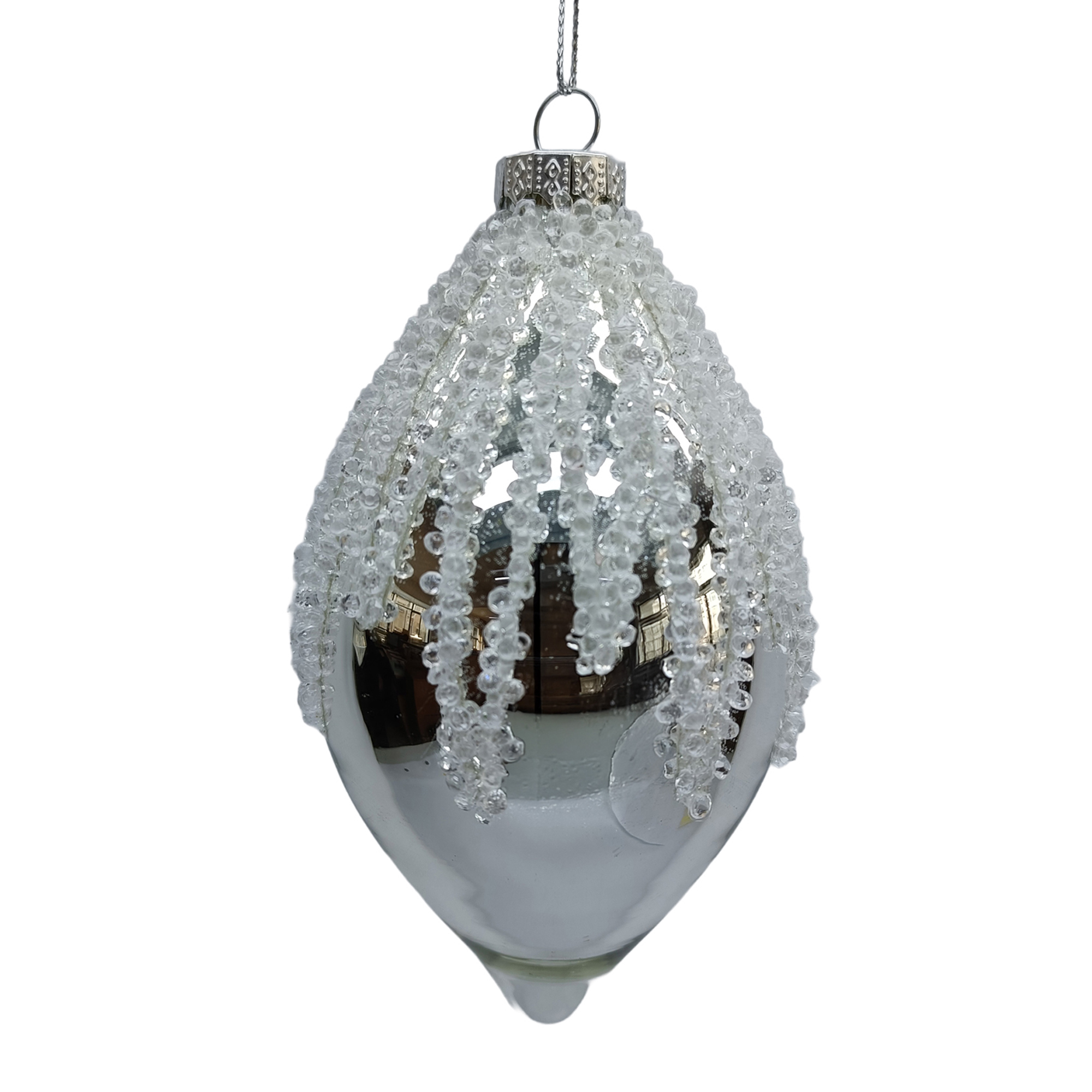 This beautiful ornament captures the essence of winter with its delicate design. The smooth, frosted glass surface reflects light softly, while the crystal-like embellishments evoke the sparkle of freshly fallen snow. Each piece is crafted with care, ensuring that it will become a cherished part of your holiday decor for years to come.