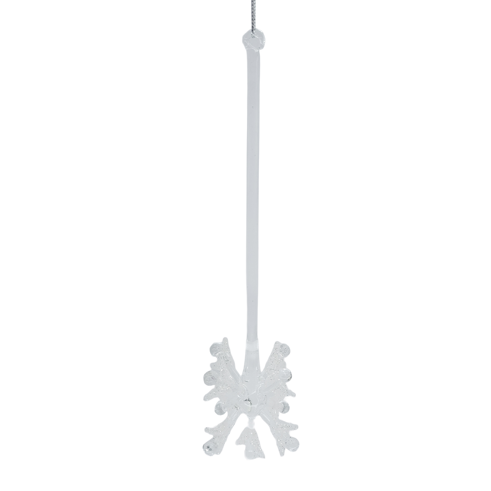 ORN GLASS SNOW DROP 8″X2.5″ CLEAR/WHITE