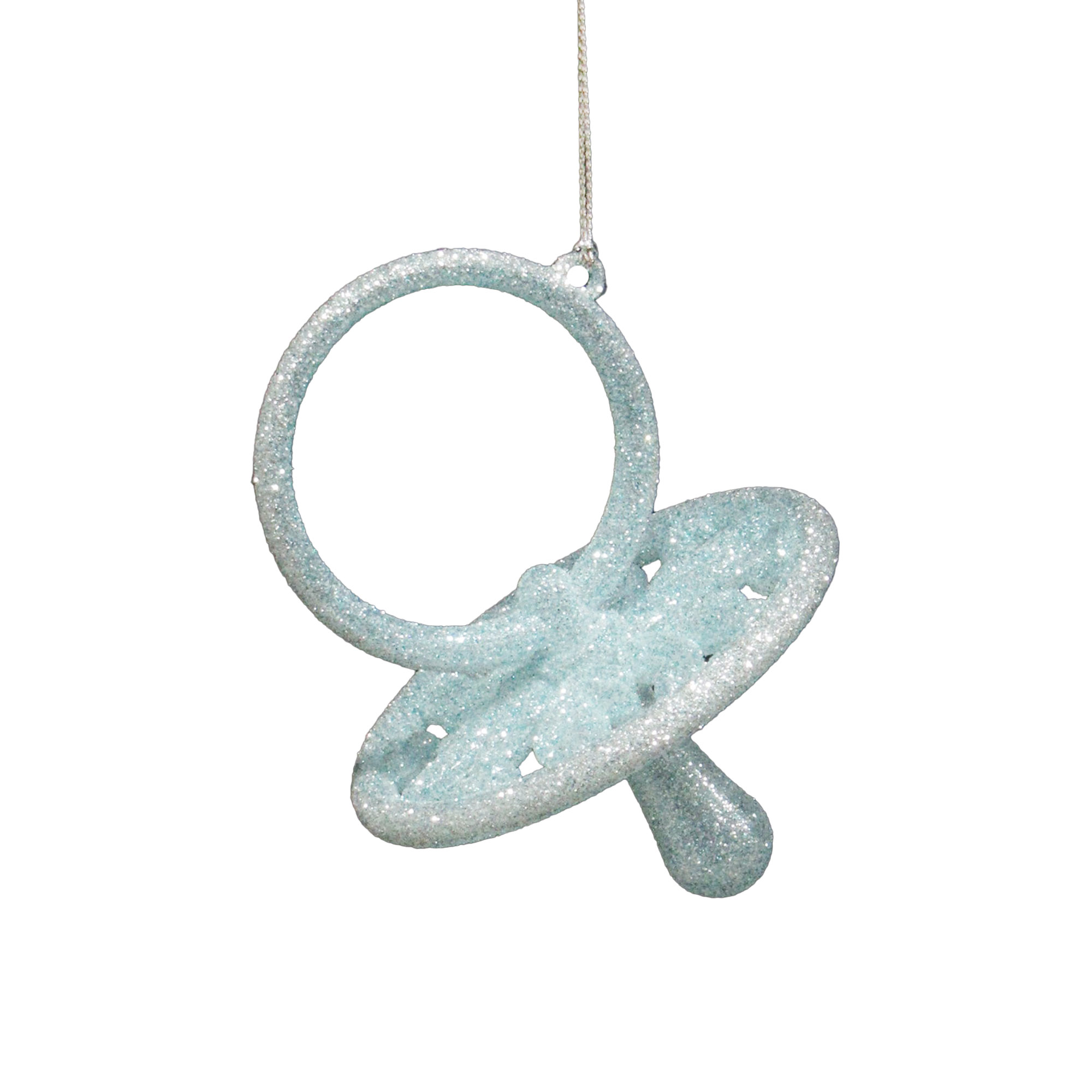 ORN PACIFIER STARLIGHT BLUE W/PALE SILVER 3-D 4″ W/GLTR