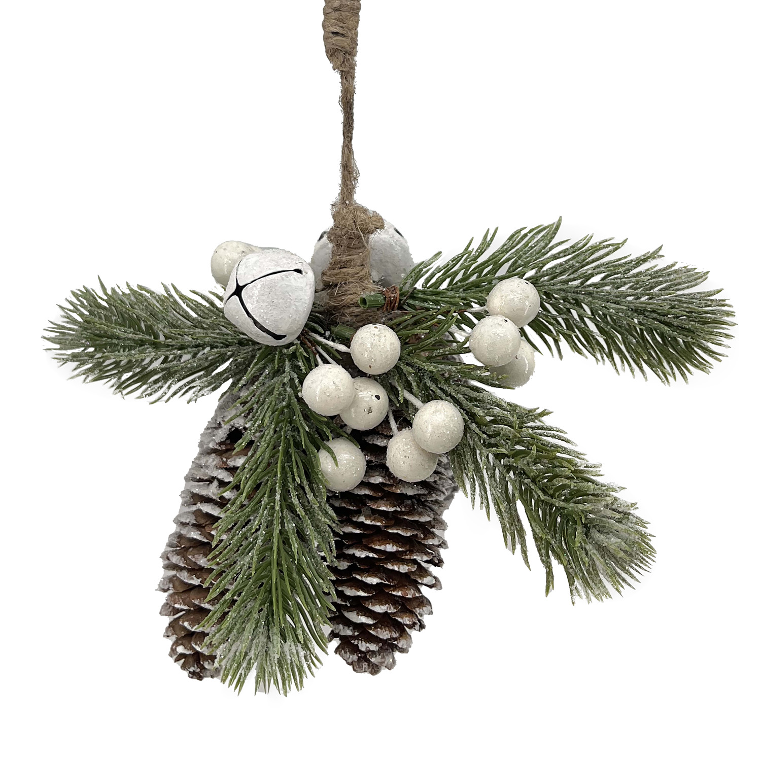 ORN NATURAL PINE & CONES FROSTED NATURAL 2.5″ W/ BERRIES & WHITE BELLS