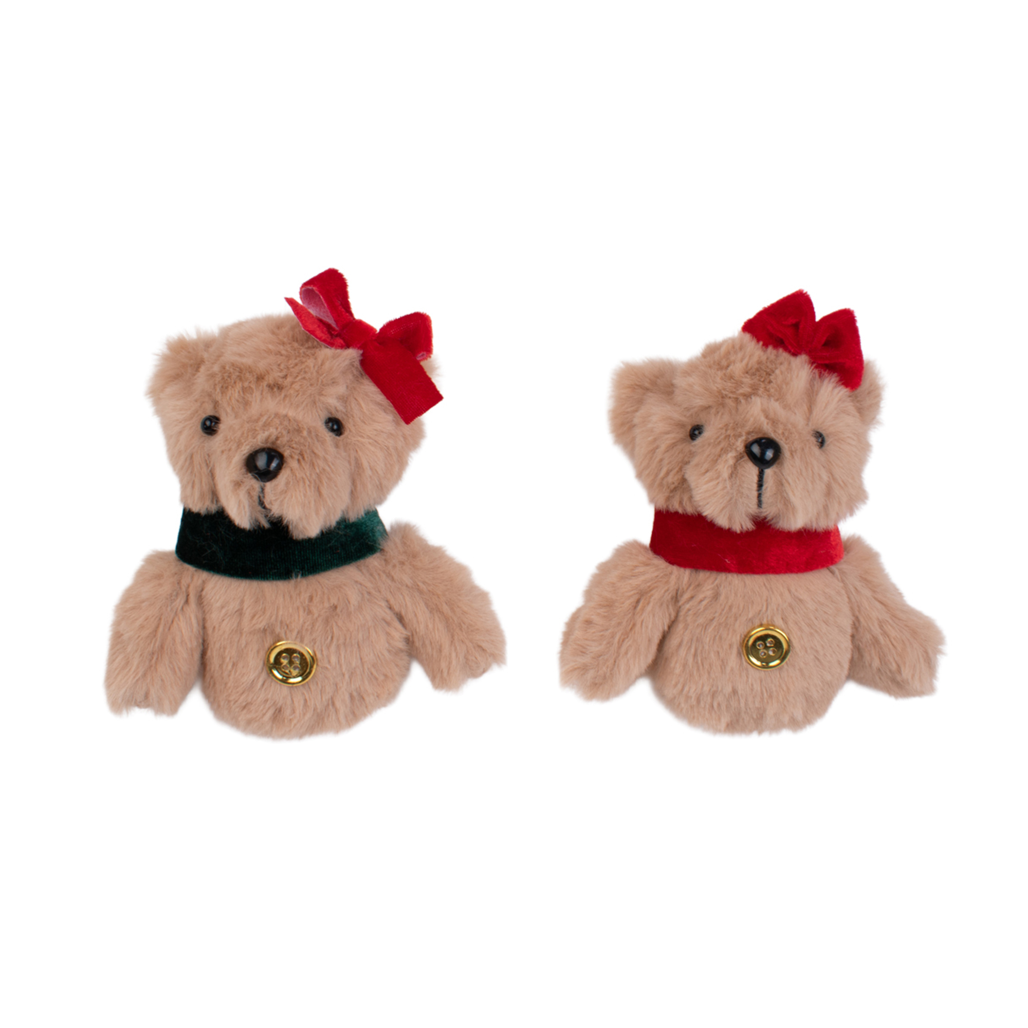 These charming holiday bears evoke the warmth of childhood memories, embodying the spirit of Christmas with their soft, plush fur and delightful expressions. Dressed in rich velvet collars adorned with lovely bows, each bear serves as a gentle reminder of family gatherings and joyous celebrations around the hearth.