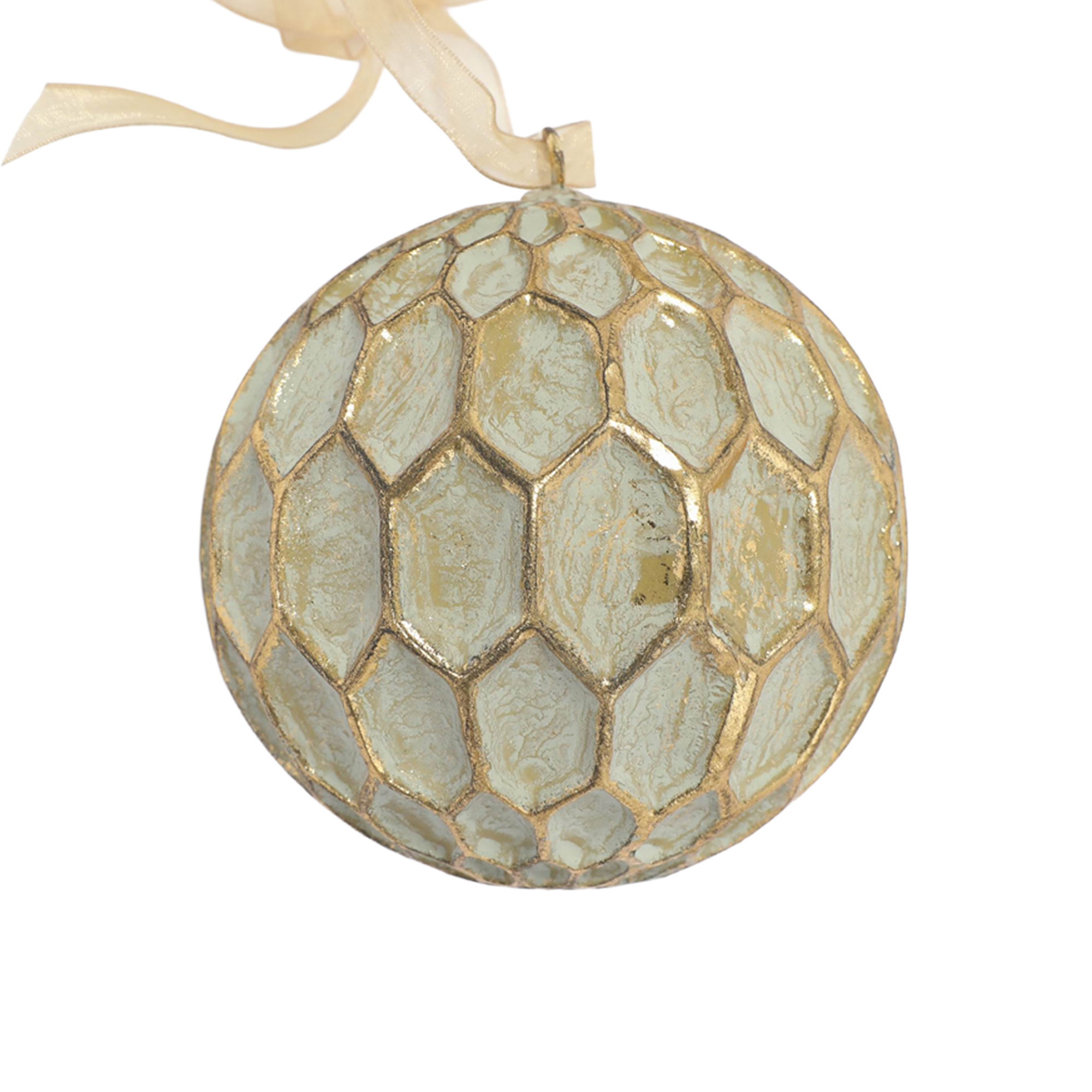ORN RESIN BALL 4″ HONEY COMB ANTIQUE GOLD