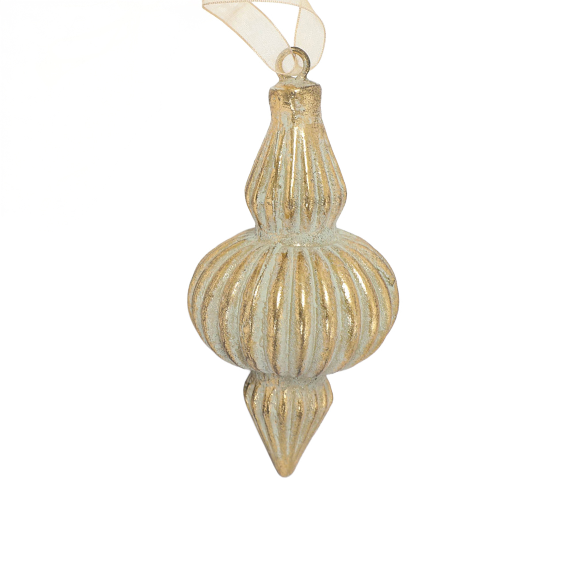 This exquisite ornament captures the timeless charm of holiday tradition with its delicate frosted finish and gentle golden accents. The beautifully ribbed design evokes the nostalgic feel of classic Christmas gatherings, making it a cherished addition to any tree, enhancing the seasonal ambiance with its soft glow.