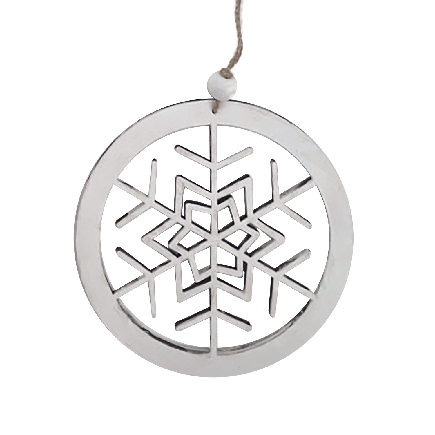ORN WOODEN DISC SNOWFLAKE 6″ WHITE