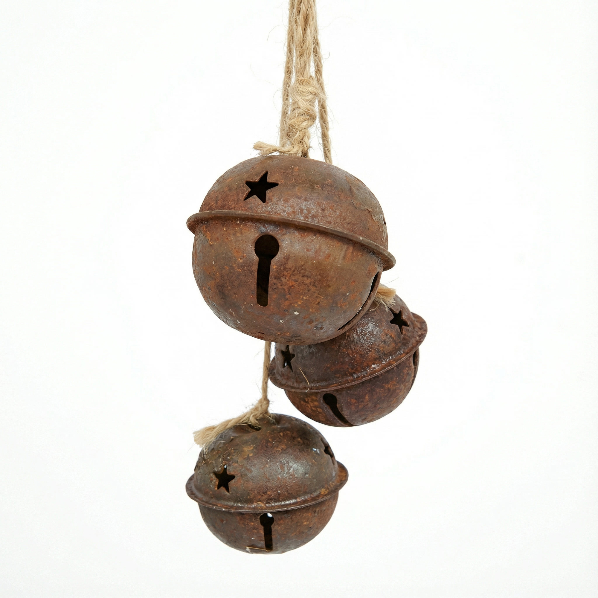 Crafted from aged metal, this delightful trio of rustic bells evokes the warm and inviting spirit of holiday gatherings. Each bell displays a charming star pattern, reminiscent of simpler times, and will bring a nostalgic touch to your festive décor, creating an atmosphere filled with cheerful memories.