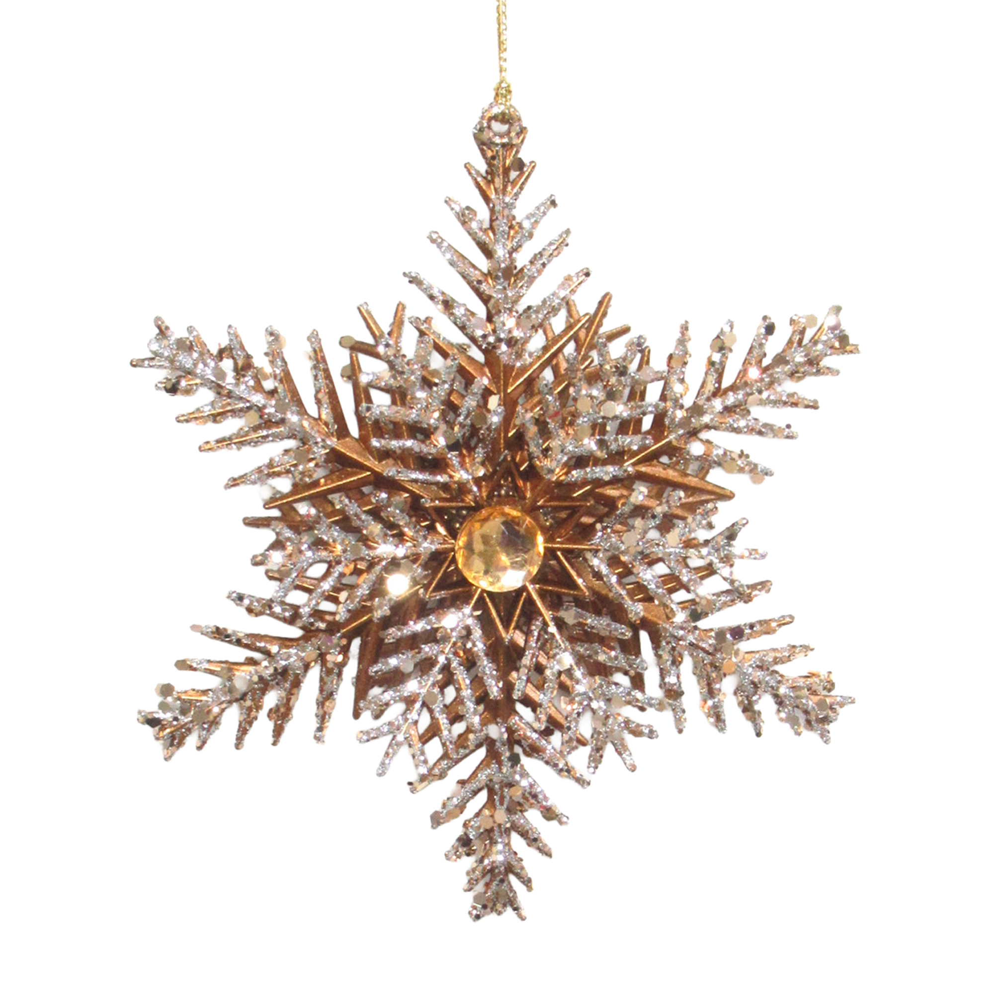 ORN SNOWFLAKE MATTE GOLDEN BRONZE W/BURLYWOOD GLITTER PINE NEEDLE W/CHAMPAGNE GOLD JEWEL 5.4″