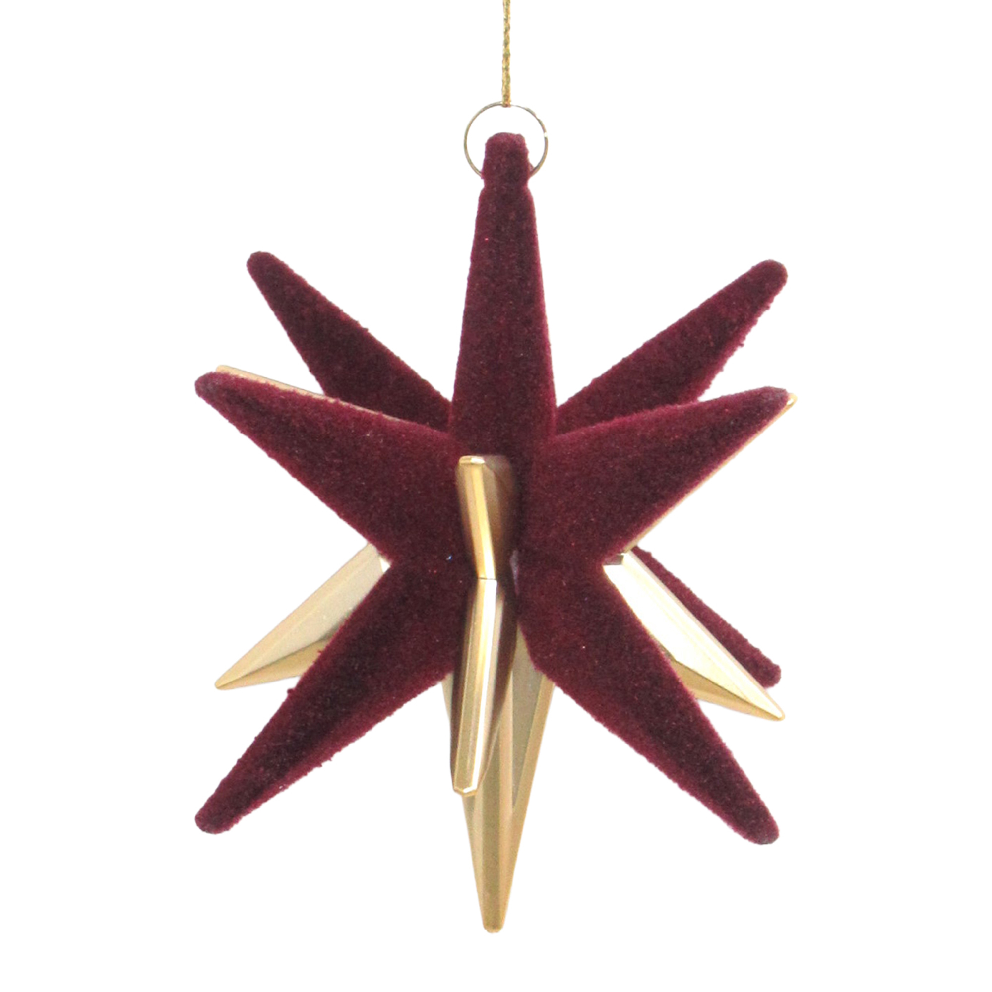 Embrace the warmth of the season with this striking ornament, crafted to resemble the timeless Star of Bethlehem. The rich burgundy felt provides a soft texture, beautifully contrasted by golden accents that capture the light, evoking the spirit of holiday wonder and cherished traditions.