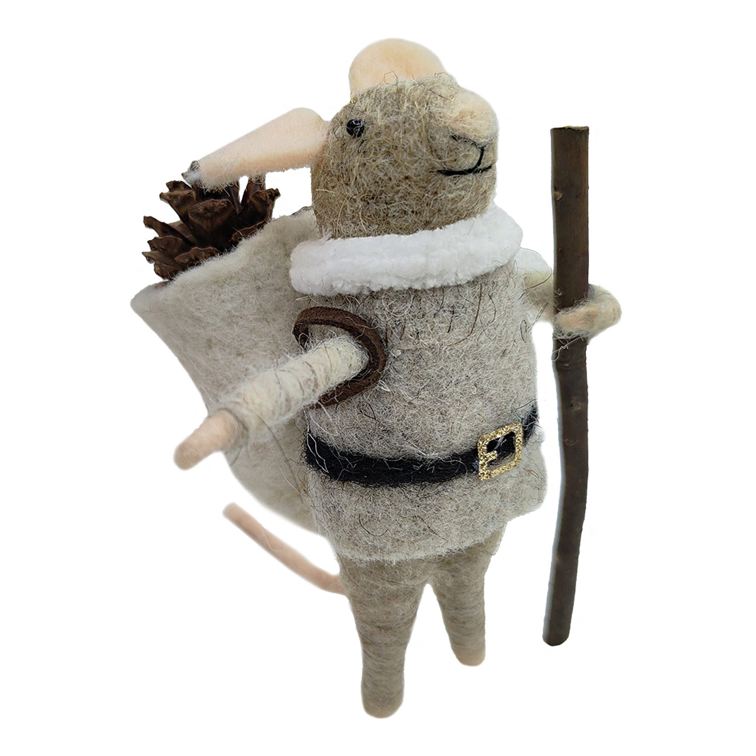 ORN WOOL MOUSE HIKING W/ CONE & SACK 5″ GREY/BROWN