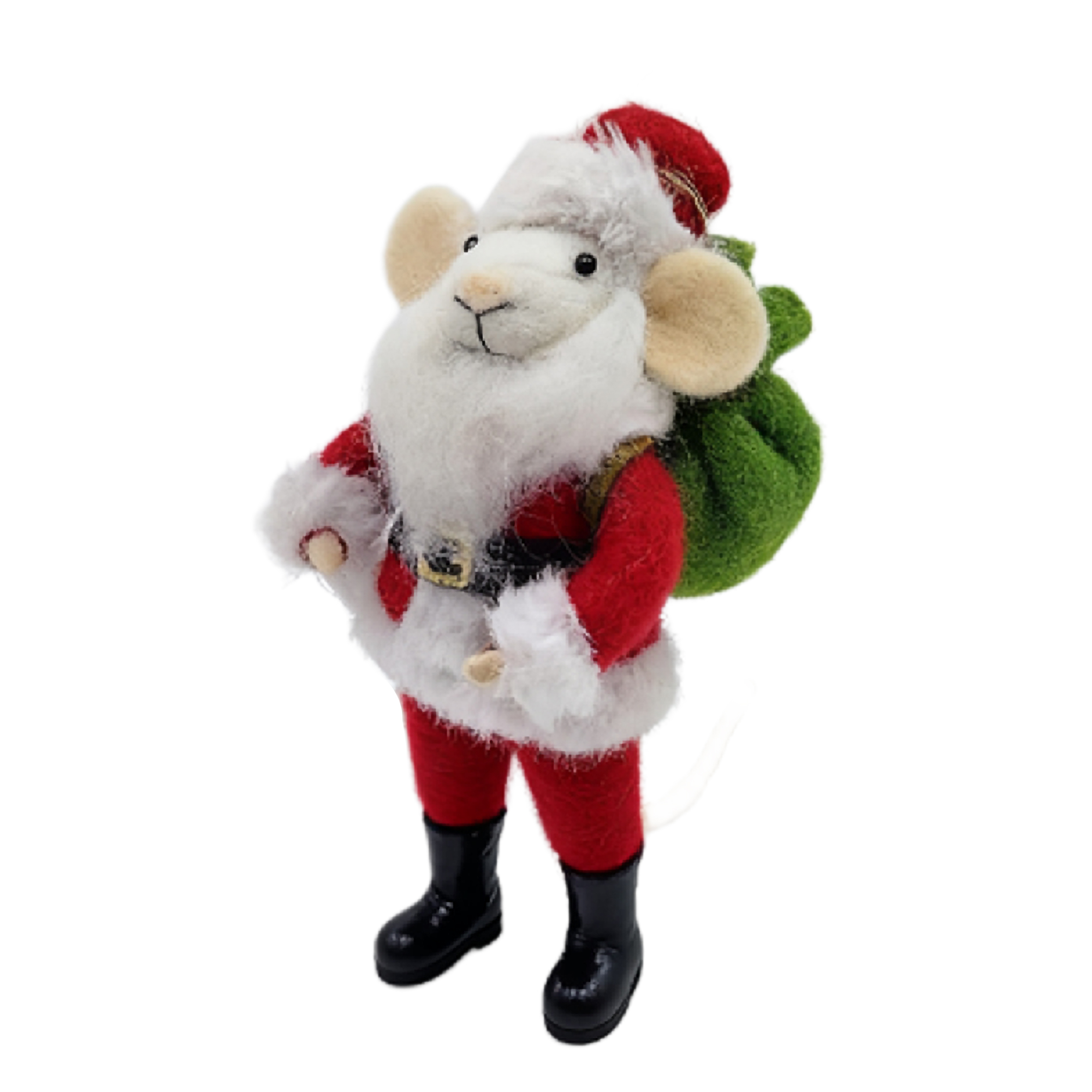 This charming decoration captures the spirit of the season with its delightful portrayal of a sheep clad in a classic Santa suit. Meticulously crafted from soft wool, it brings to mind the warmth of family gatherings around the fireplace, while its cheerful demeanor adds a touch of whimsy to any holiday display.