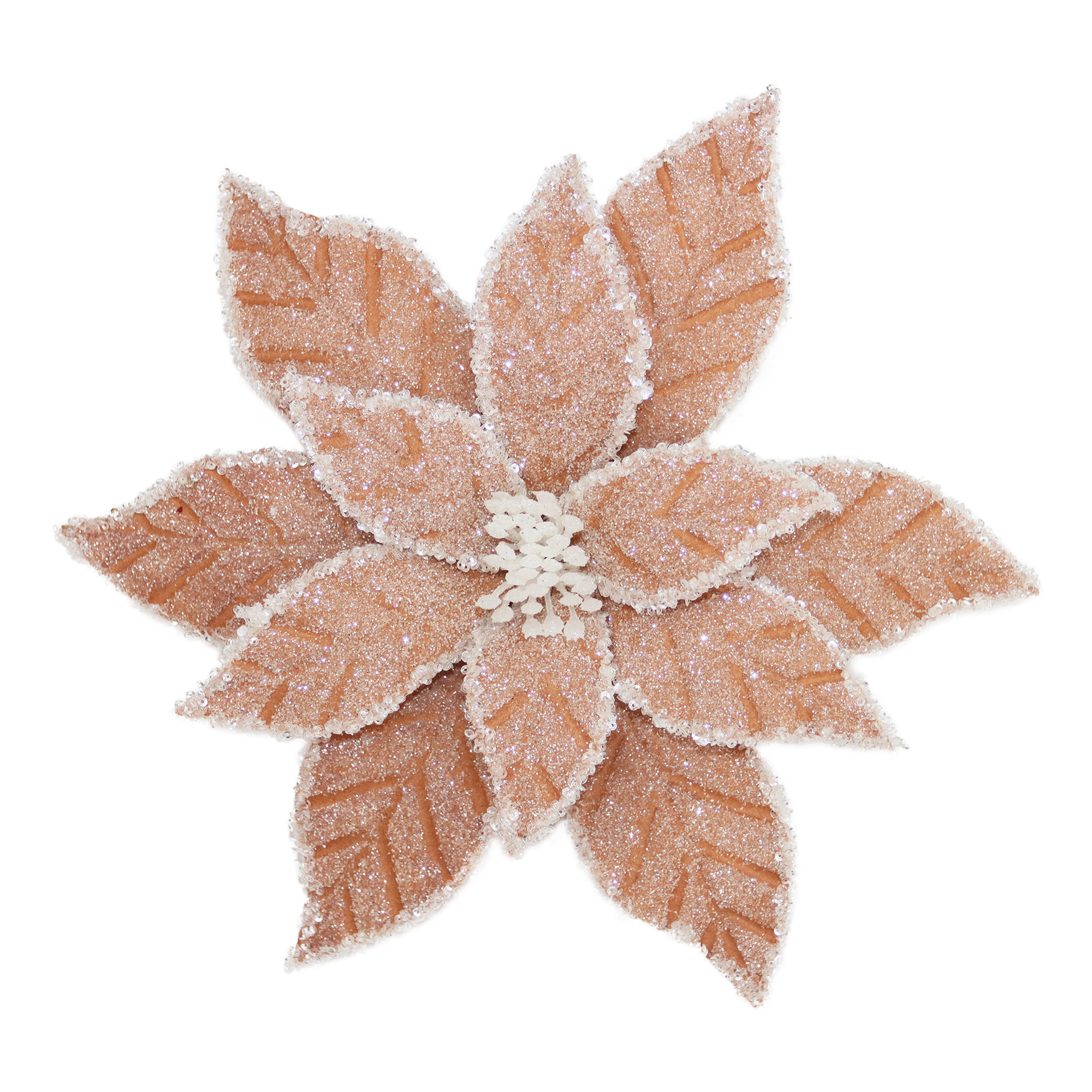 POINSETTIA HEAD BROWN 12″ FABRIC ICED W/ GLITTER