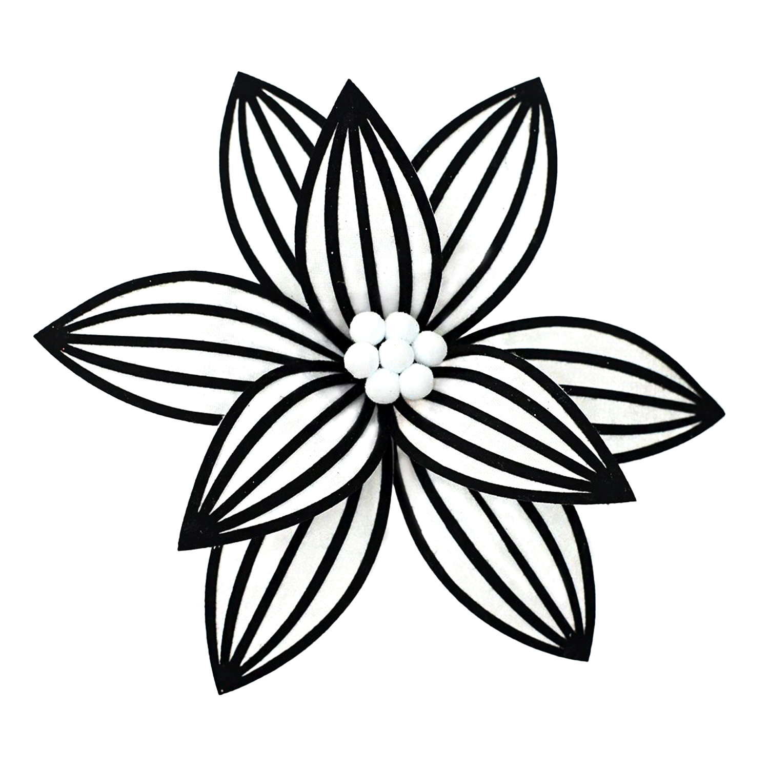 POINSETTIA HEAD BLACK / WHITE7.5″ FABRIC W/ STRIPES & CLIP