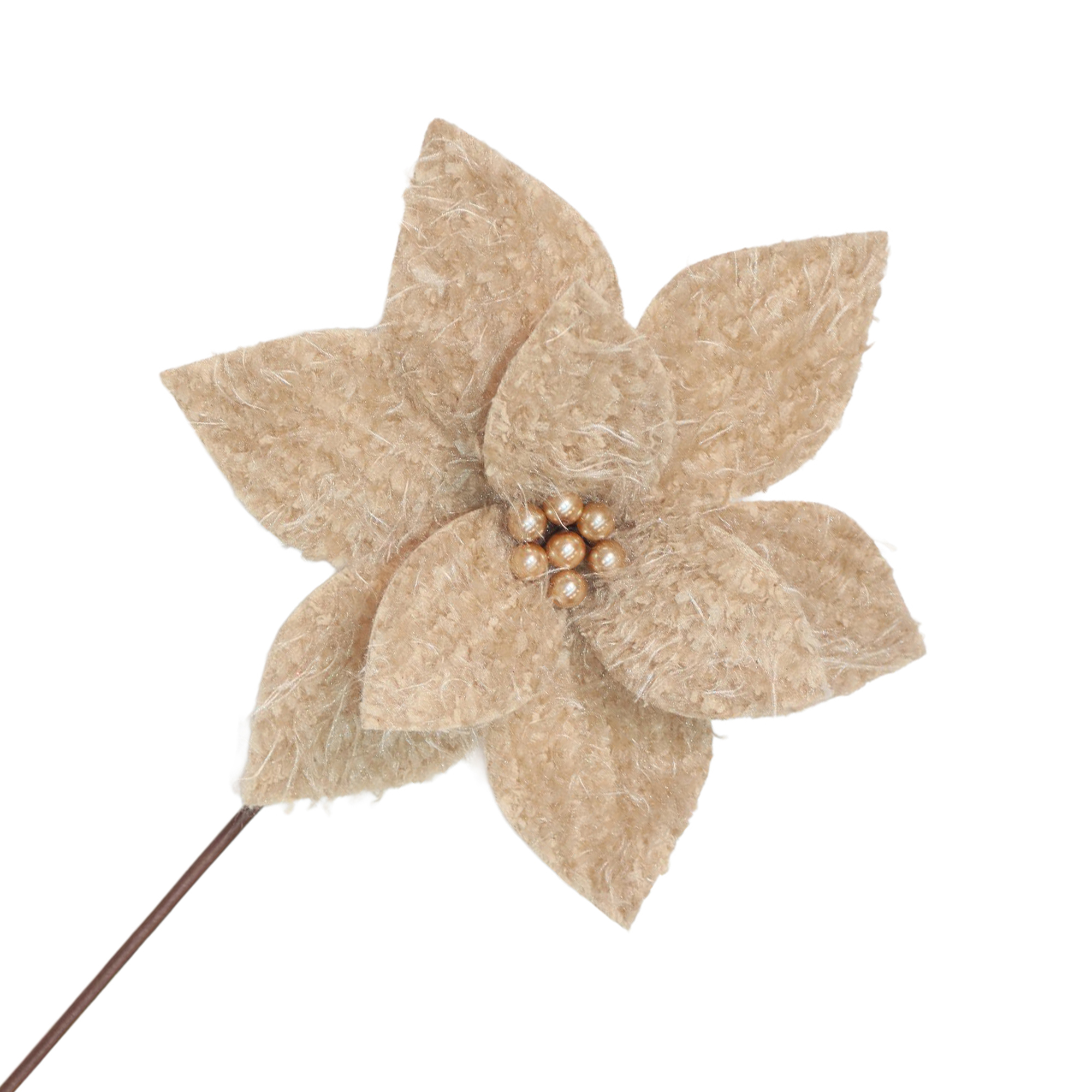 Adorned with soft textures and gentle hues, this poinsettia pick captures the essence of cherished holiday moments. Crafted with a vintage-inspired artistry, the delicate felt petals evoke the warmth of winter gatherings and the timeless beauty of nature, making it a perfect accent for your festive arrangements.