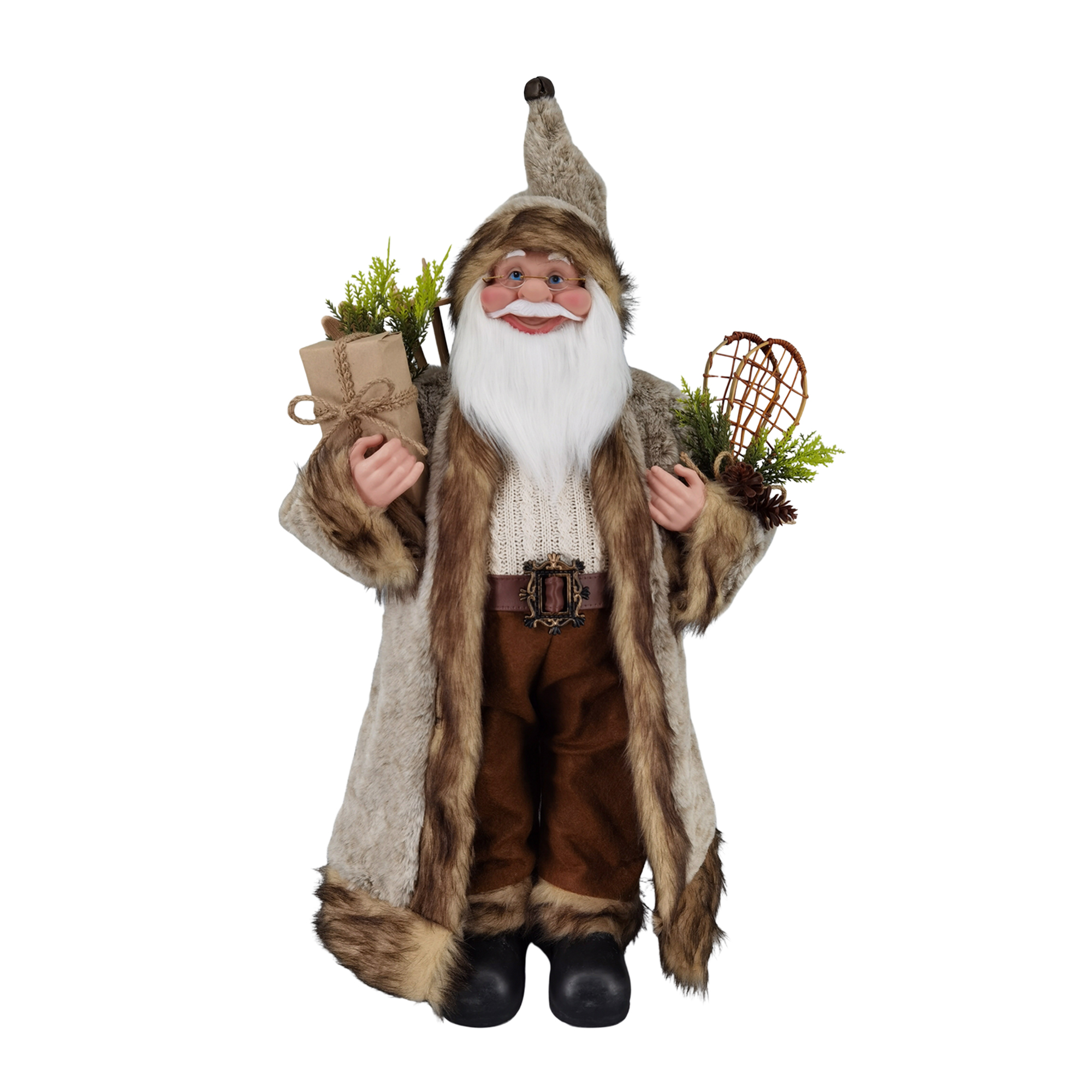 Crafted with care, this delightful Santa brings the spirit of the great outdoors into your home. Adorned in a richly textured, fur-trimmed coat, he captures the essence of nostalgic holiday cheer, while his twinkling eyes evoke warmth and kindness, making him a cherished addition to your festive décor.