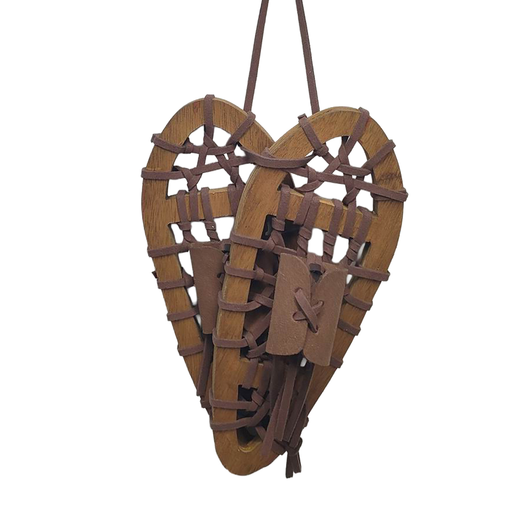 This charming heart-shaped snowshoe brings the rich traditions of wintertime outdoors into your home. Crafted from sturdy wood and rustic leather lacing, this piece evokes nostalgic memories of snowy adventures and family gatherings around the hearth. Ideal for adding a touch of warmth and history to your holiday decor, it beautifully embodies the spirit of winter.