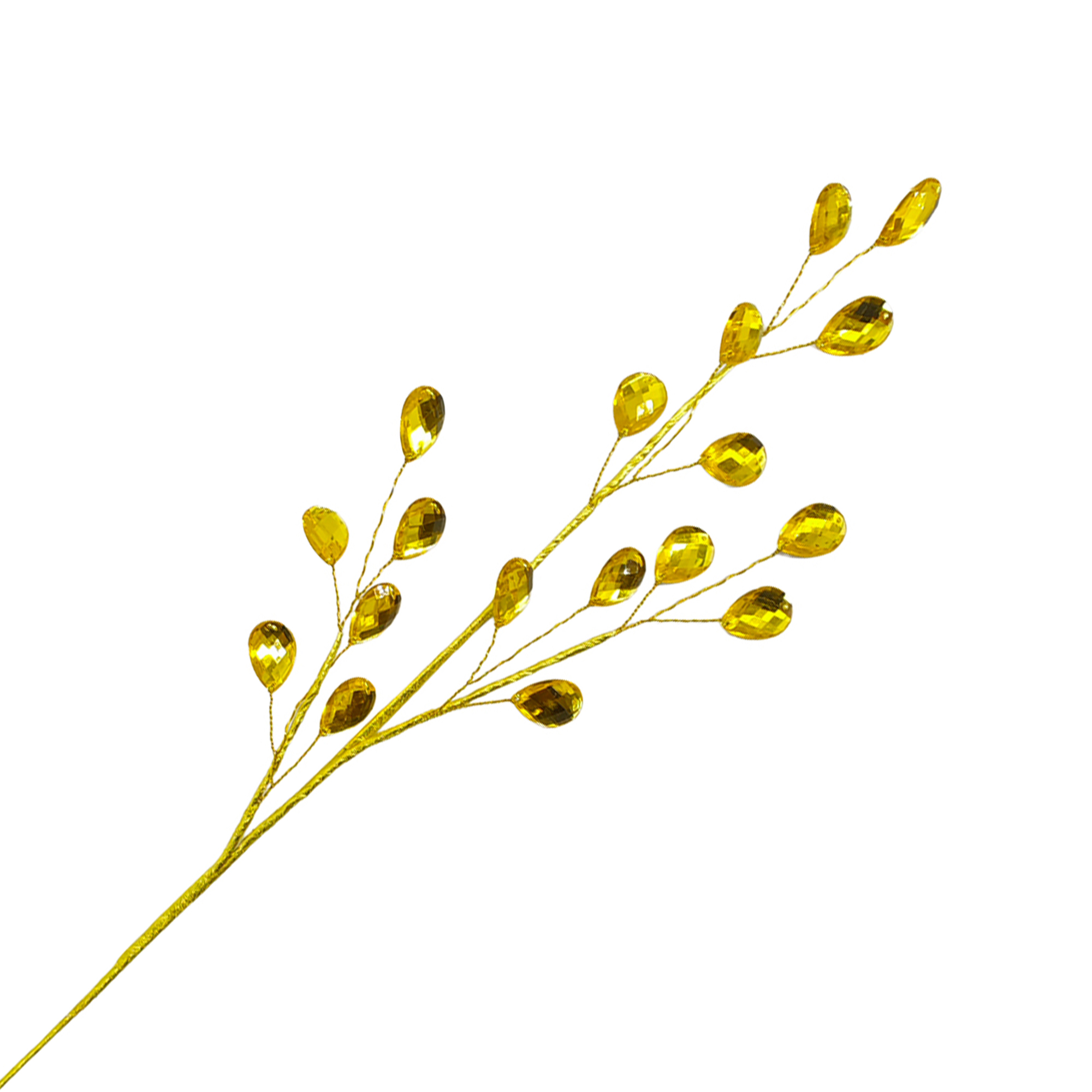 This exquisite stem captures the essence of winters beauty with its shimmering, golden accents. Crafted with care, each leaf-shaped bud glistens like fresh frost under the winter sun, creating a perfect complement to your festive arrangements. The warm, golden hue evokes cherished memories of holiday gatherings and the joy they bring.