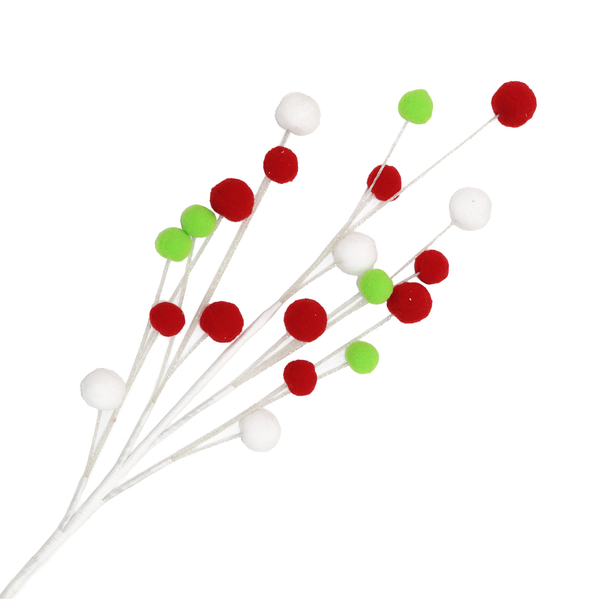 SPRAY BALL BRANCH ELF/GRINCH RED/WHT/GREEN 28.5″ WOOL