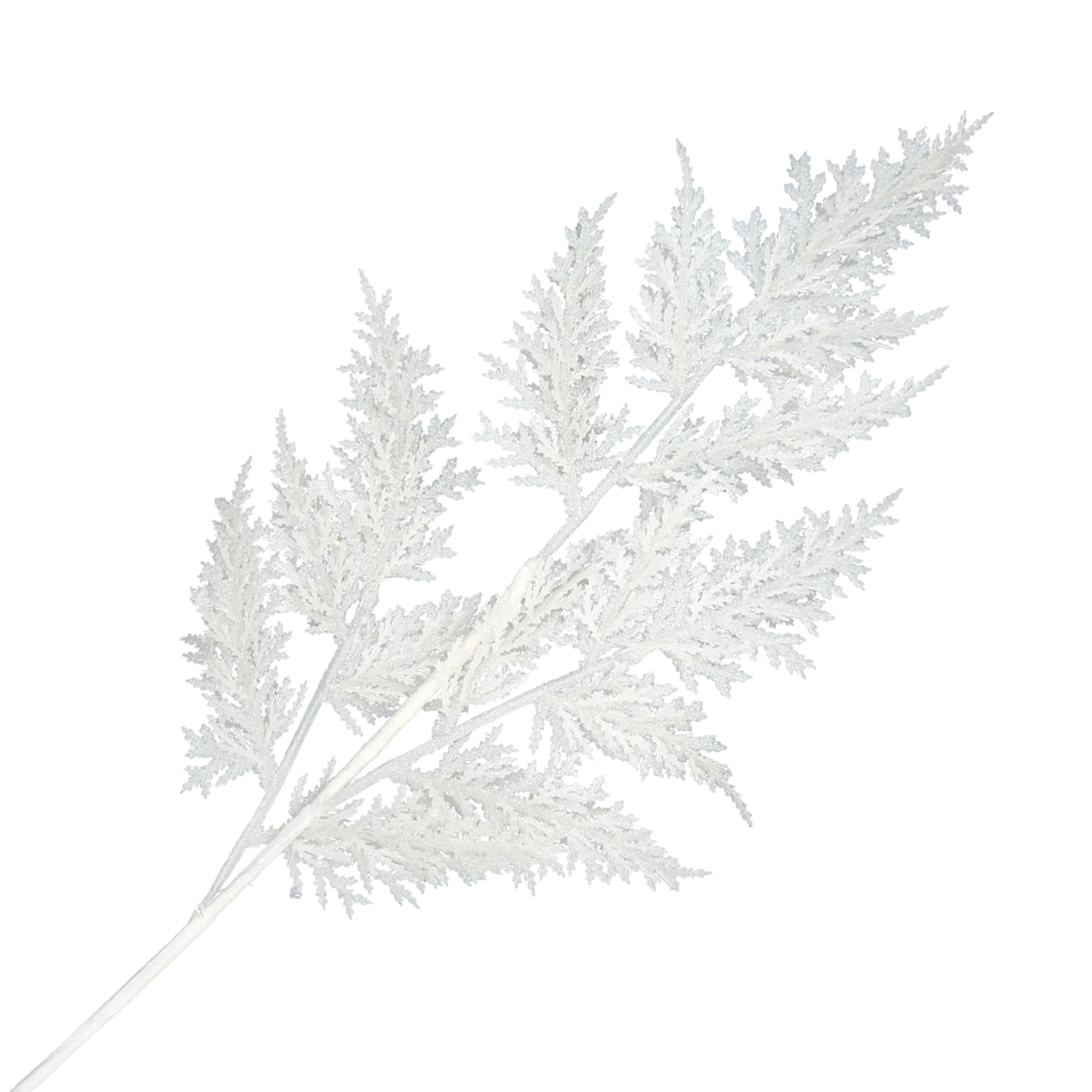 SPRAY CEDAR LEAF WHITE 26″ GLITTER