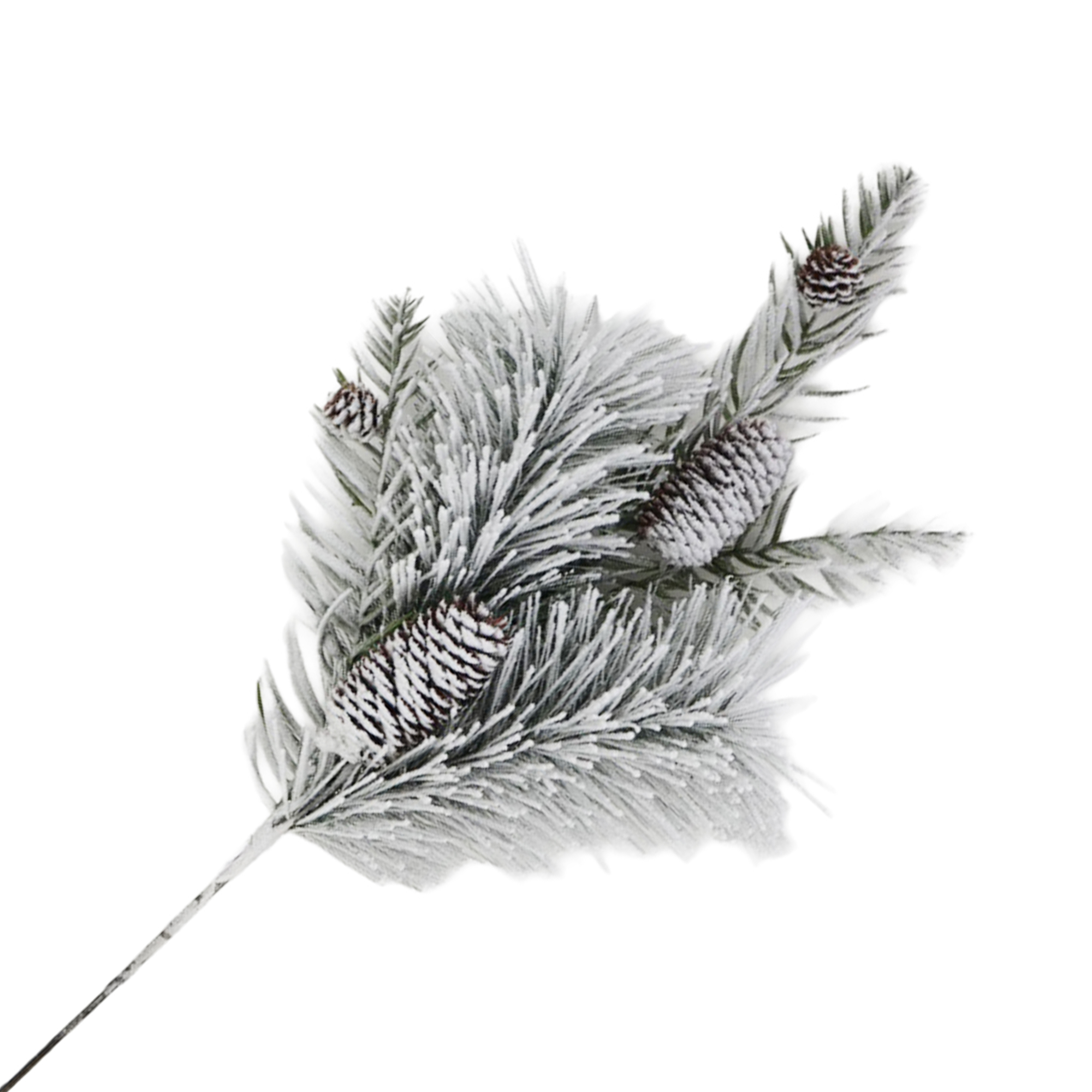 Embodying the serene beauty of winter’s embrace, this delightful branch features soft, frosted pine needles artfully adorned with delicate pine cones. Its lifelike appearance evokes cherished holiday memories spent by the fire, basking in the warmth of family togetherness and festive cheer.