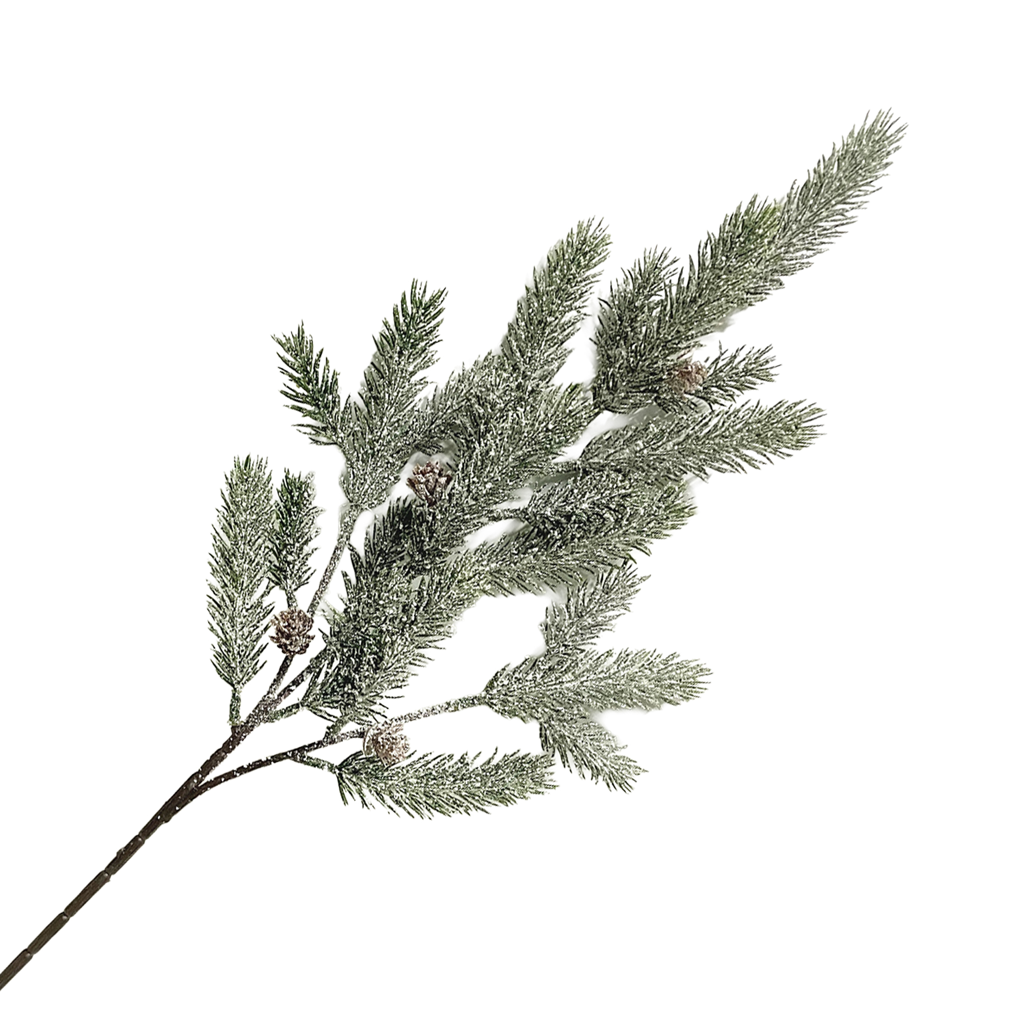 Transform your holiday decor with this exquisite frosted pine branch, evoking memories of winter’s serene beauty. The soft, silvery needles dusted with a gentle snowfall capture the essence of a traditional Christmas, while the realistically crafted pine cones add a touch of rustic charm. This decorative piece brings the warmth of a snowy forest into your home, perfect for creating timeless arrangements or adding to your tree.