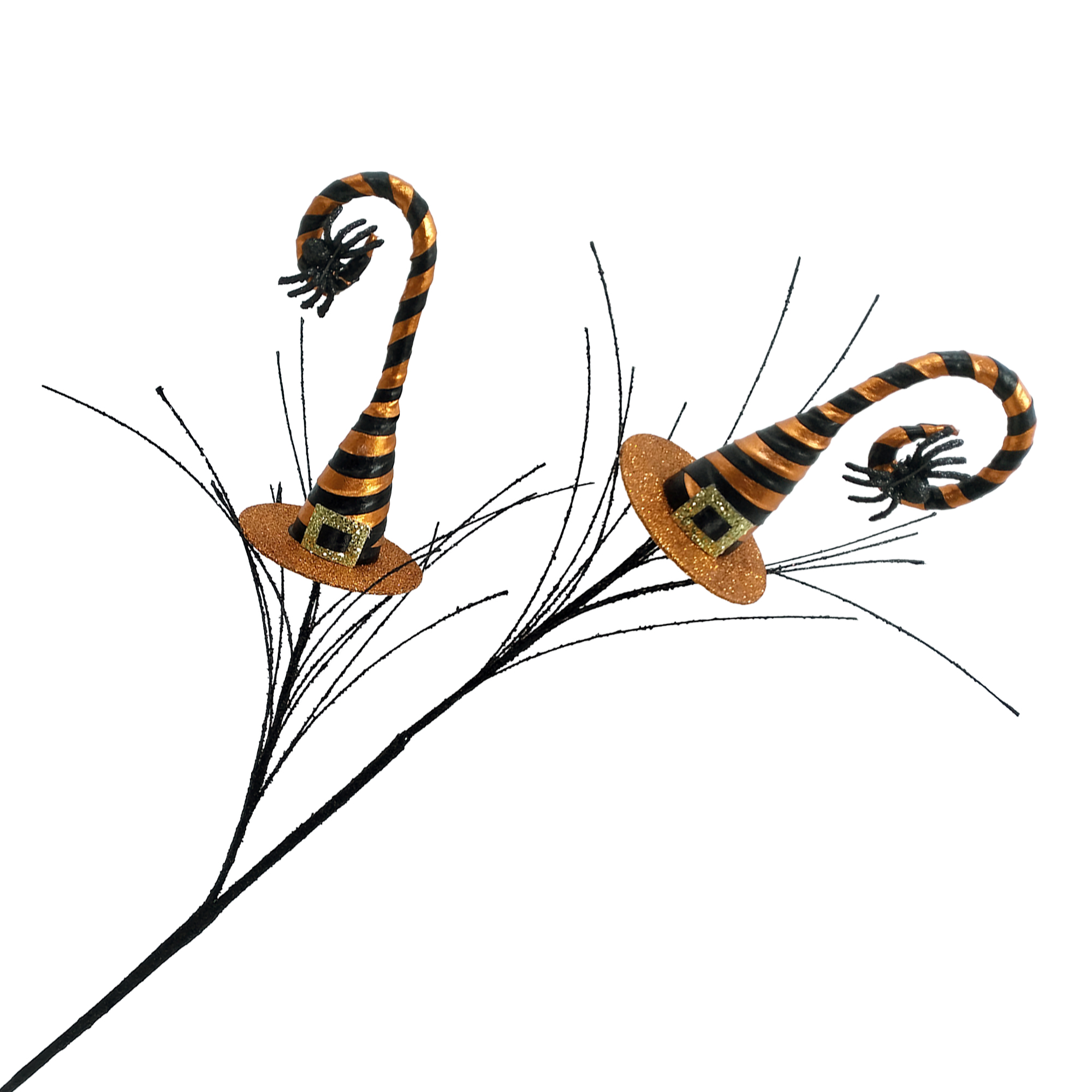 Delight in the whimsy of this festive decoration, perfect for adding a touch of playful charm to your autumn arrangements. Crafted with care, each pick features a whimsically twisted witchs hat adorned in classic black and orange stripes, evoking memories of joyful Halloween celebrations. This enchanting design captures the spirit of the season, making it a delightful addition to your holiday decor.