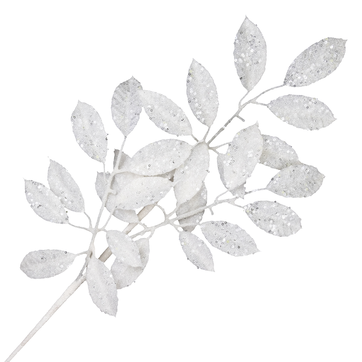 SPRAY LEAVES 33″ WHITE W/ SILVER GLITTER