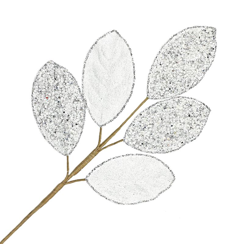 SPRAY LEAVES MAGNOLIA 24″ SILVER/ICE GLITTER METALLIC