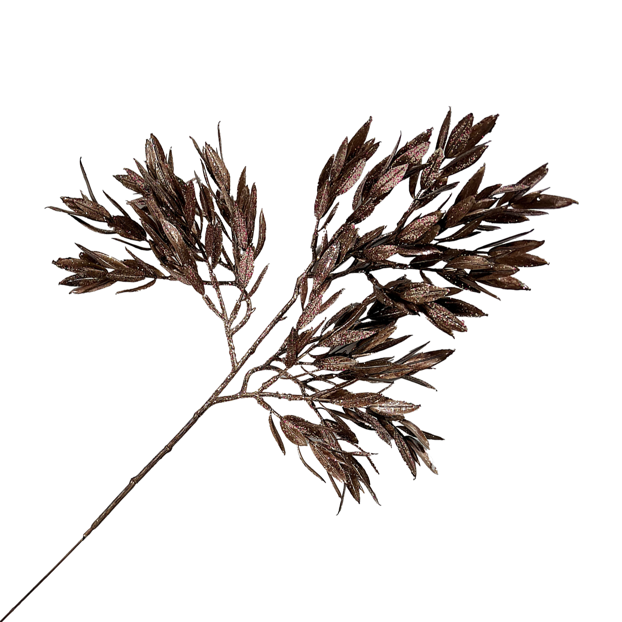 SPRAY MINI SAGE LEAF BROWN 23.25″ GLITTER