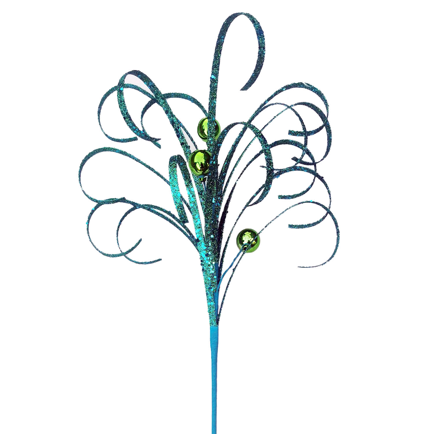 SPRAY CURLS 25″ W/ BALLS PEACOCK GREEN GLITTER