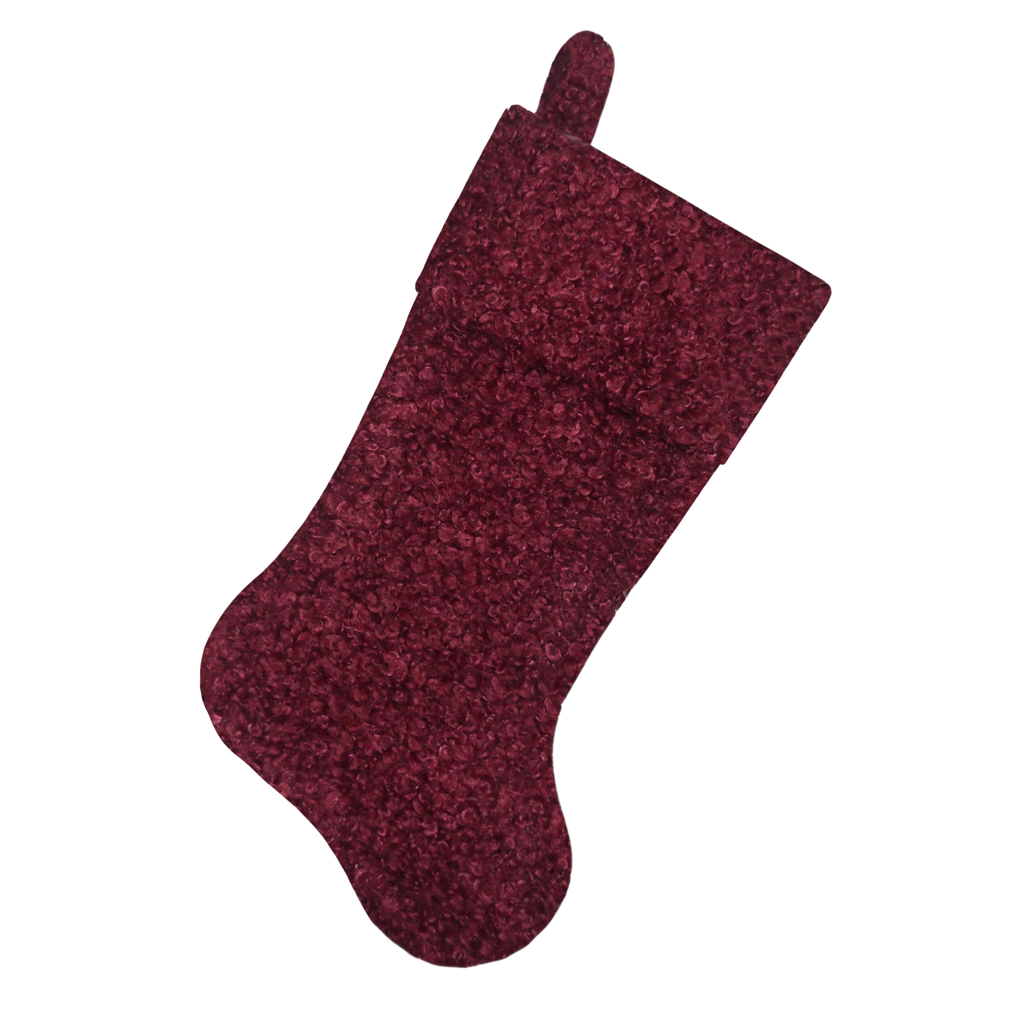 This charming stocking, woven in a rich burgundy tone, evokes the warmth and comfort of gatherings by the fire. Crafted with care, its textured fabric invites memories of hanging handmade stockings in years gone by, reminding us of the simple joys of the season spent with loved ones.