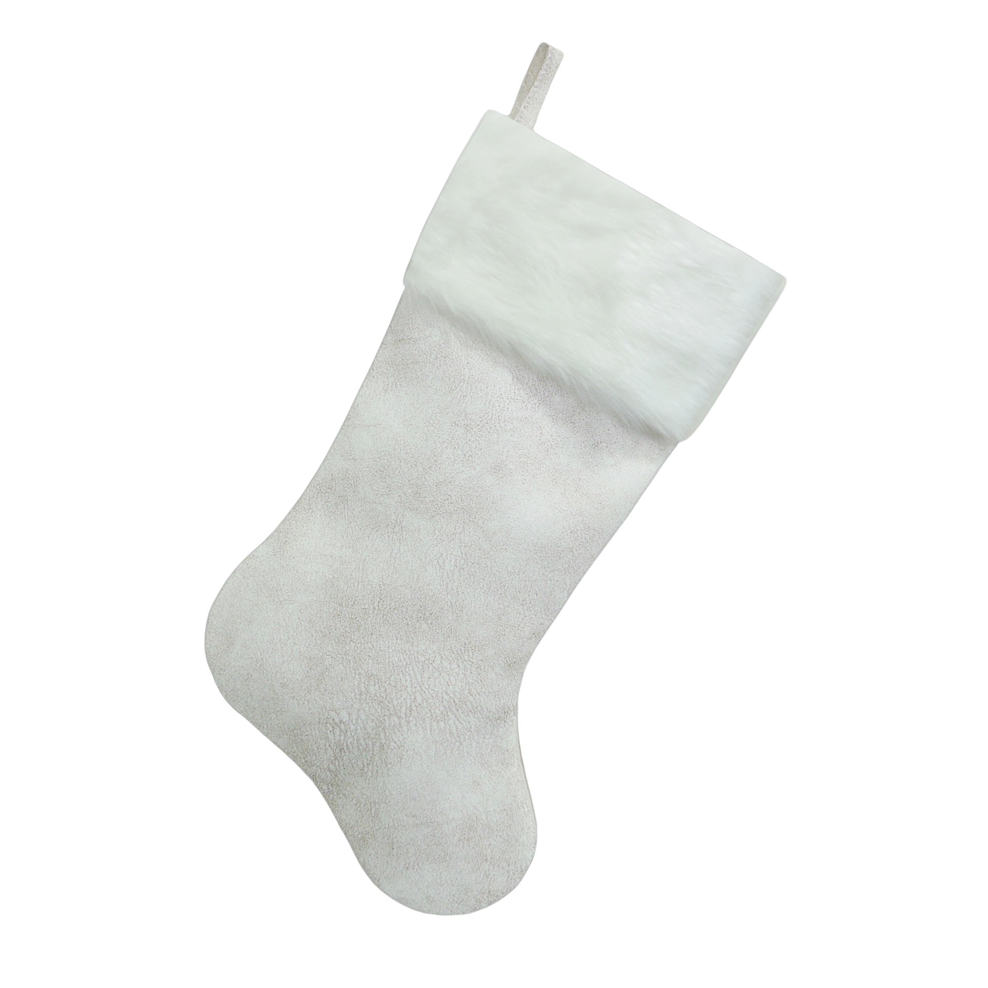 STOCKING 20.5″ IVORY/WHITE FAUX SUEDE W/FAUX FUR CUFF