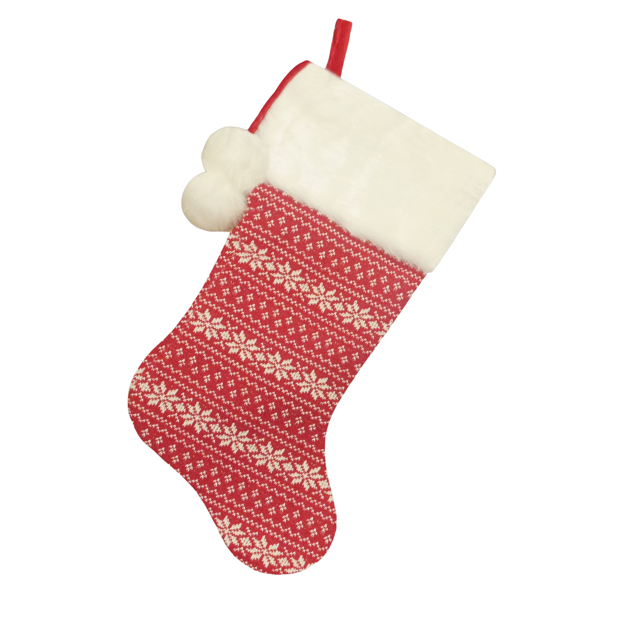 Adorned in a warm, festive red with a classic snowflake pattern, this delightful stocking evokes memories of cherished family gatherings by the hearth. The soft white cuff adds a touch of coziness, reminiscent of winter’s gentle embrace, making it a heartwarming addition to your holiday décor.