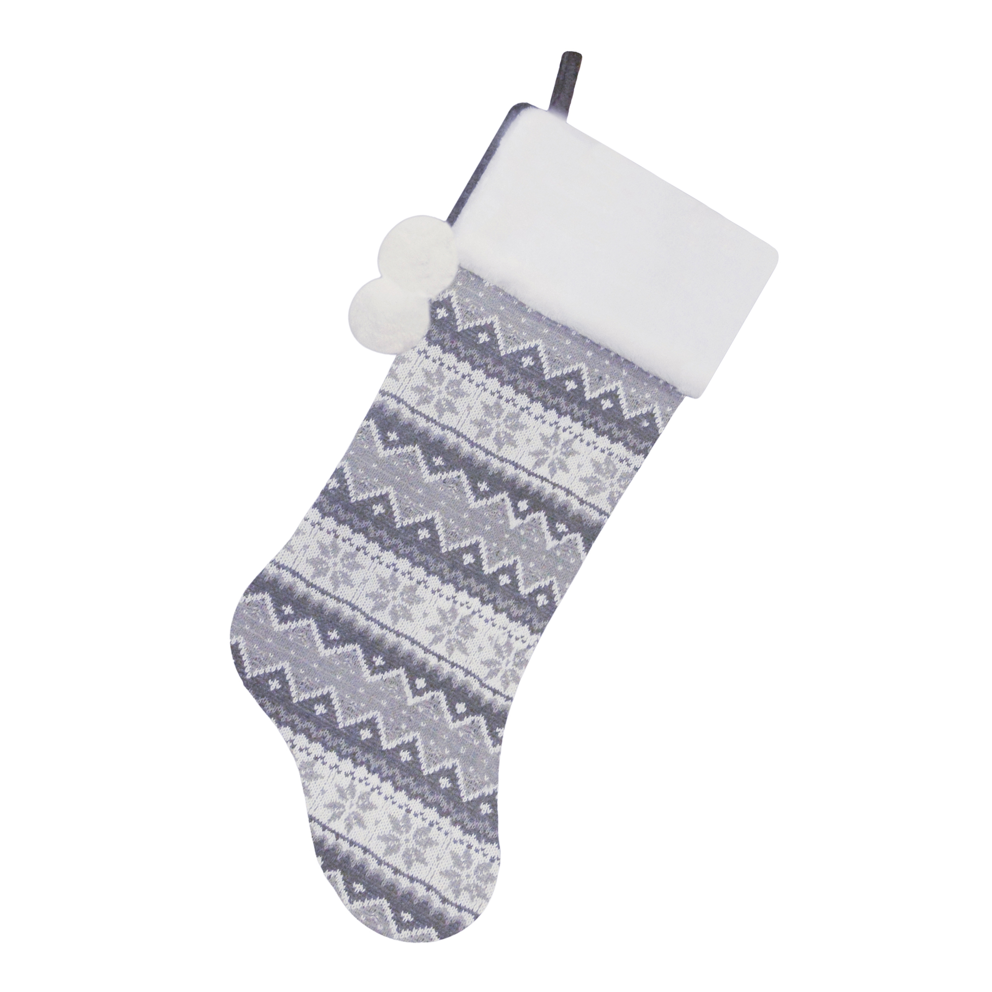 STOCKING 21.5″ GREY/WHITE KNITTED W/FAUX FUR CUFF & POMS POMS