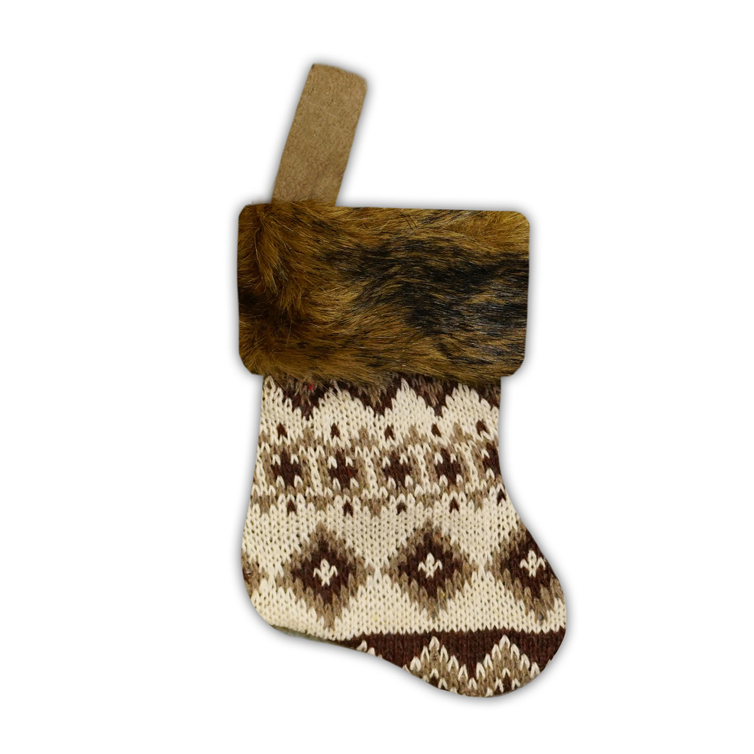 STOCKING MINI 6″ BROWN KNITTED W/ FAUX FUR CUFF