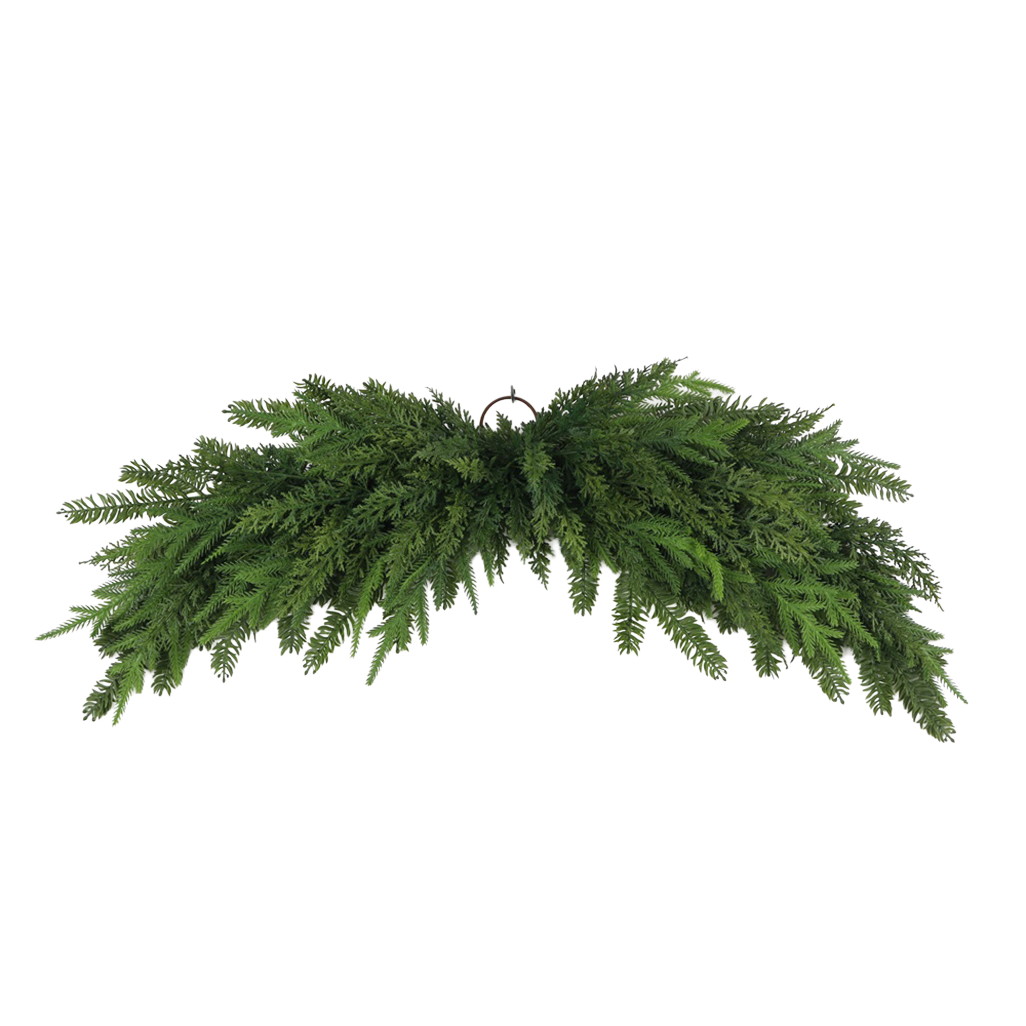 This lush and elegant garland captures the essence of a traditional winters eve, adorned with a multitude of vibrant green branches reminiscent of a fragrant pine forest. Skillfully crafted to evoke cherished memories of joyful decorating, it brings a timeless quality to your home, inviting warmth and holiday spirit into every gathering.