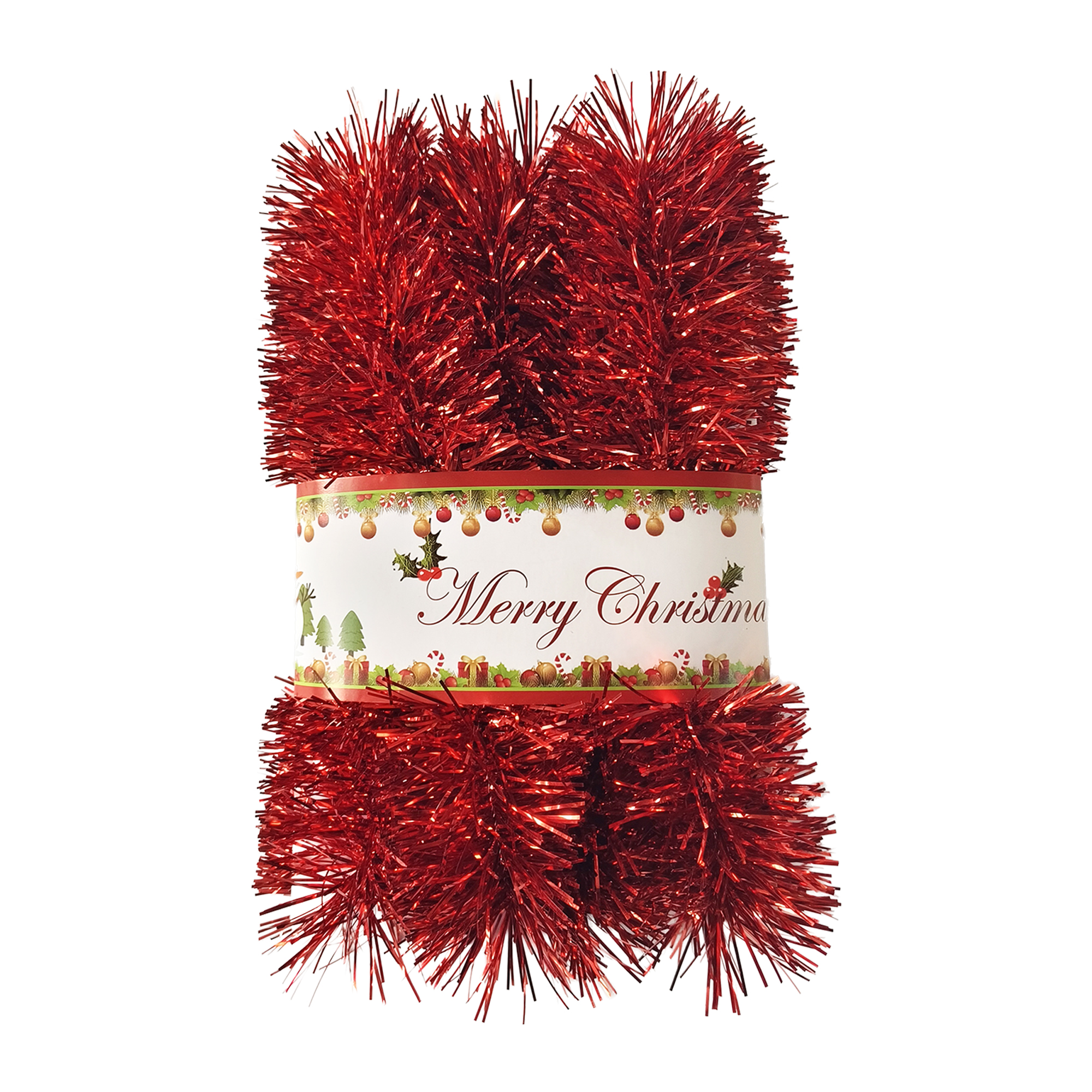 TINSEL GARLAND 2.7″ X 5PLY X 9FT SHINY RED