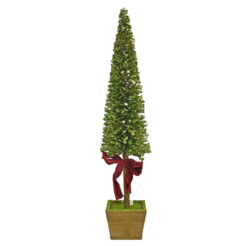 TREE MINI LEAF 37.5″ W/ WOODEN POT & RED RIBBON