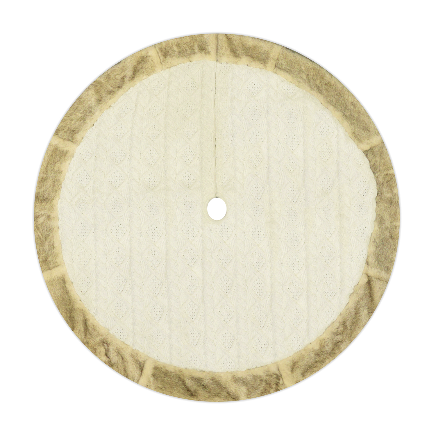 TREE SKIRT 48″ IVORY CABLE KNIT W/ FAUX FUR BORDER