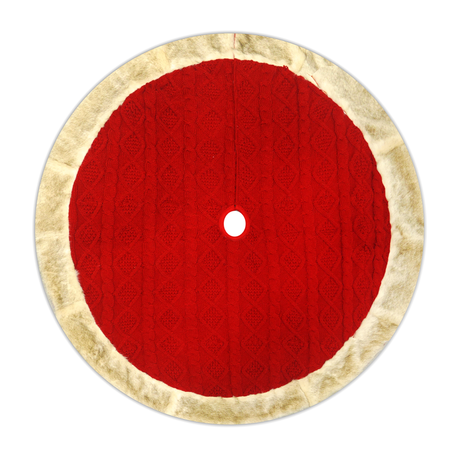 TREE SKIRT 48″ RED CABLE KNIT W/ FAUX FUR BORDER